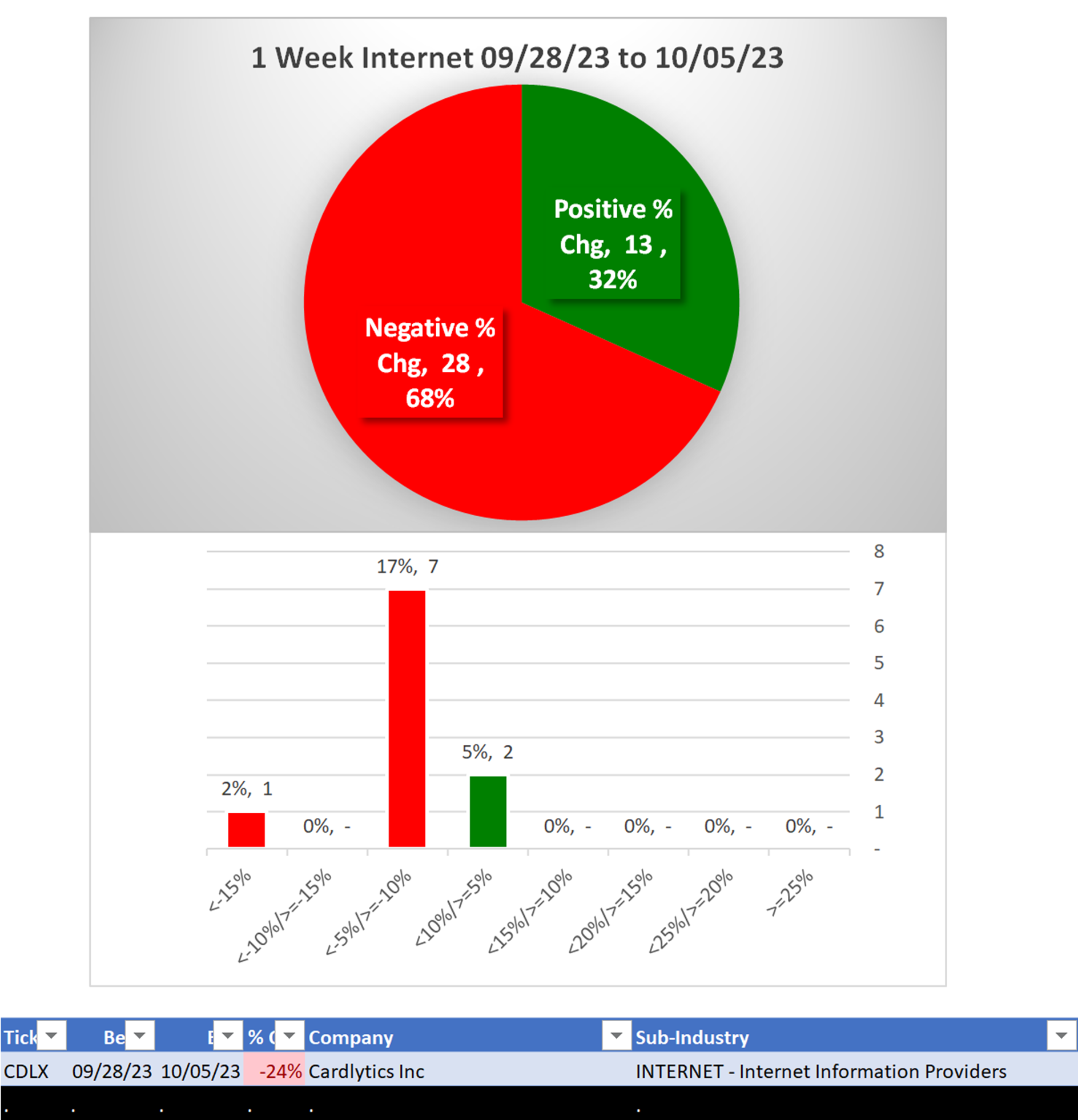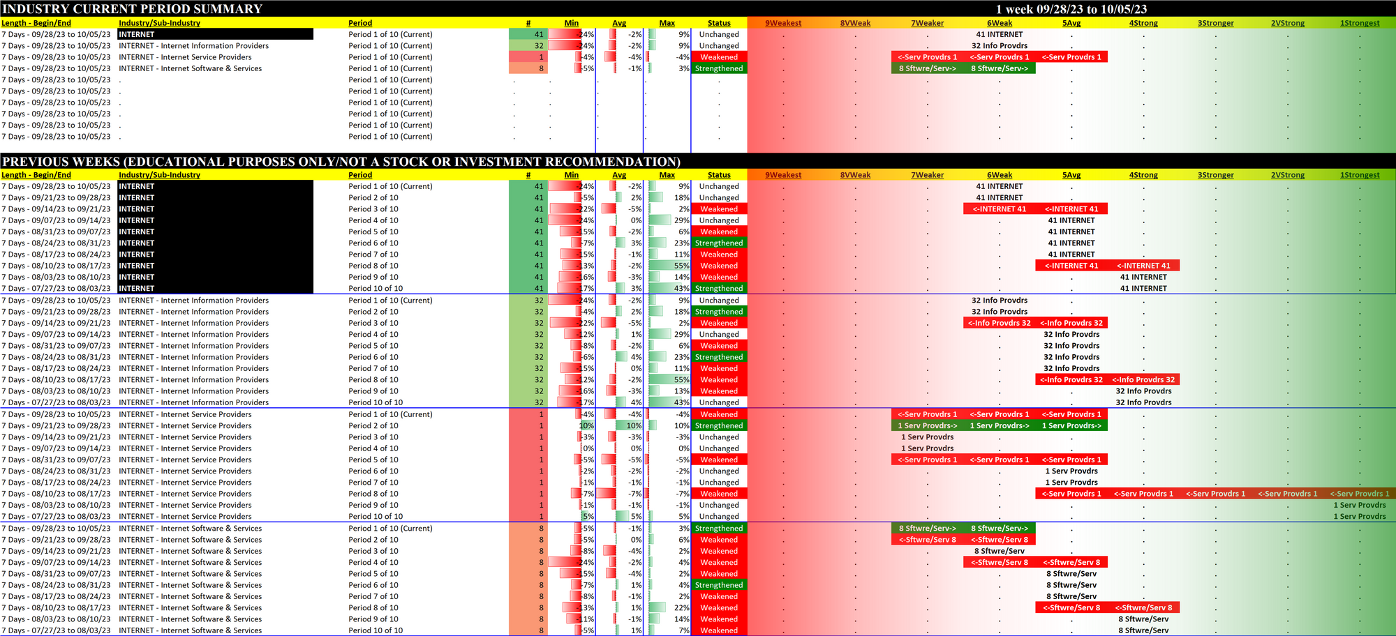 What: recent week-by-week strength changes for the industry and each underlying sub-industry