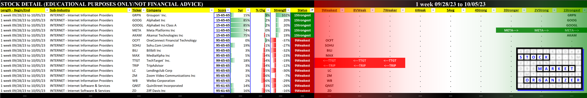 What: stocks currently rated Strongest/Weakest (highest/lowest of 9 strength ratings)