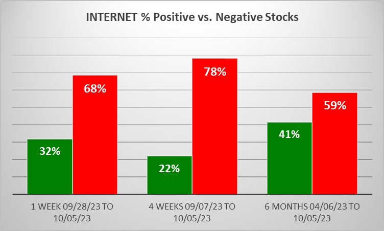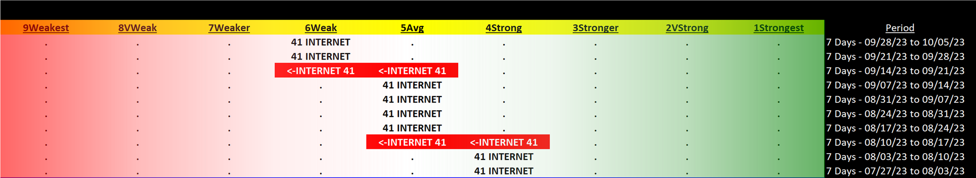 Internet 2023-10-05: Unchanged at WEAK strength rating (6th strongest of 9 levels), previous move was DOWN