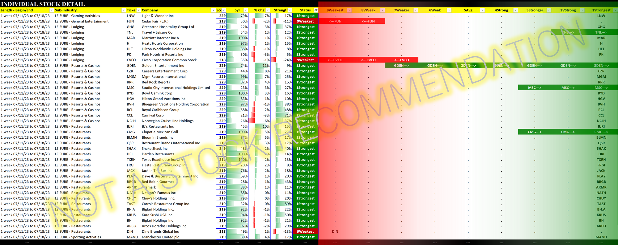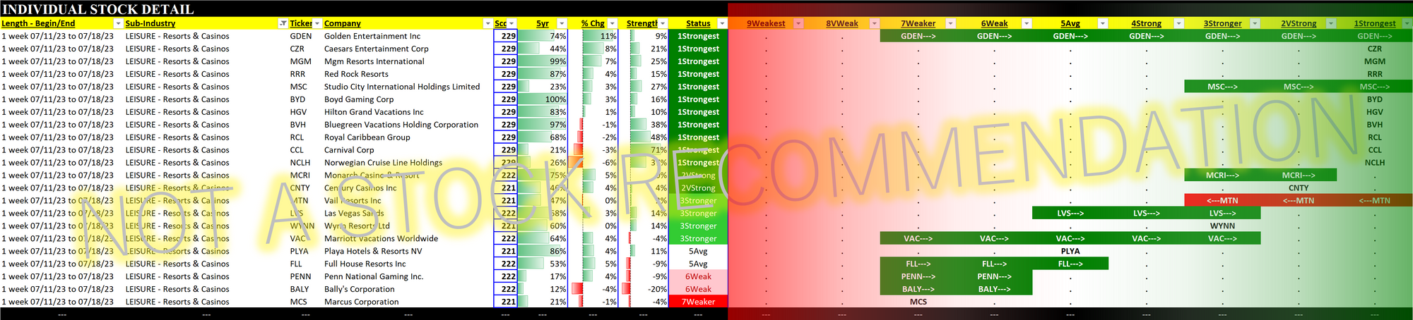 Resorts & Casinos includes RCL/Royal Caribbean Group, CCL/Carnival Corp., and NCLH/Norwegian Cruise Line Holdings, all of which were obliterated during the COVID implosion. Spoiler alert: each of these now has a Strongest rating.