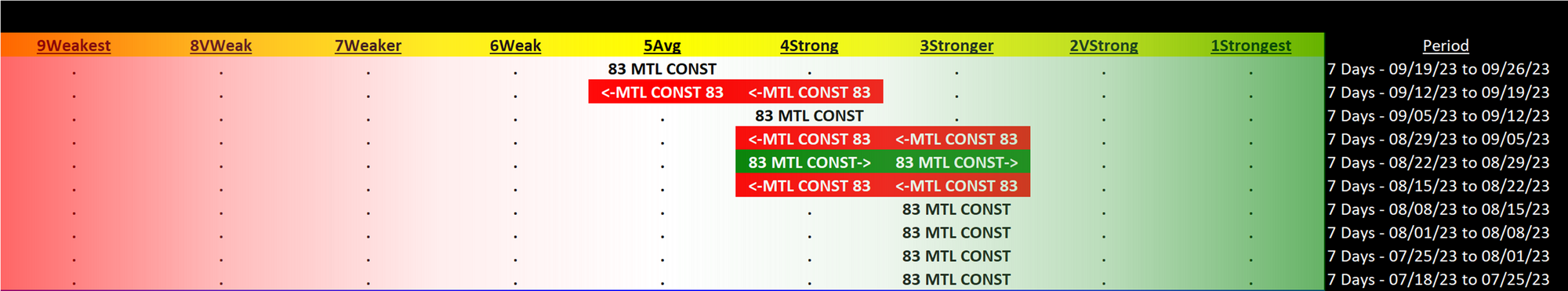 Past 10 Weeks Strengthening/Weakening week-by-week, per the following chart: