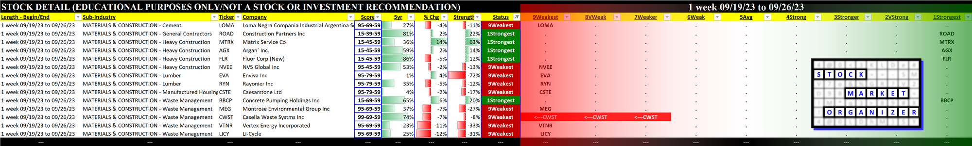 What: stocks currently rated Strongest/Weakest (highest/lowest of 9 strength ratings)