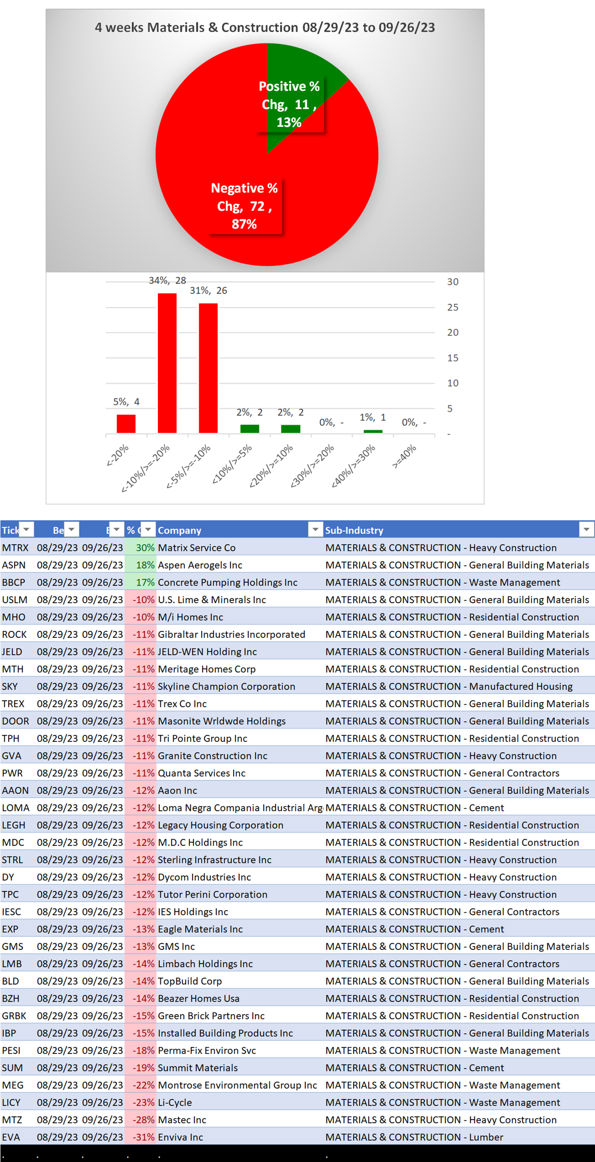 - 4 weeks, 39% of industry stocks <-10%.