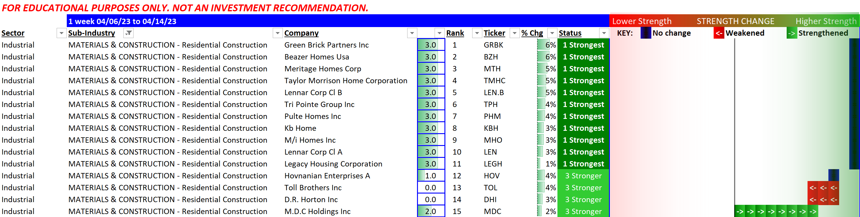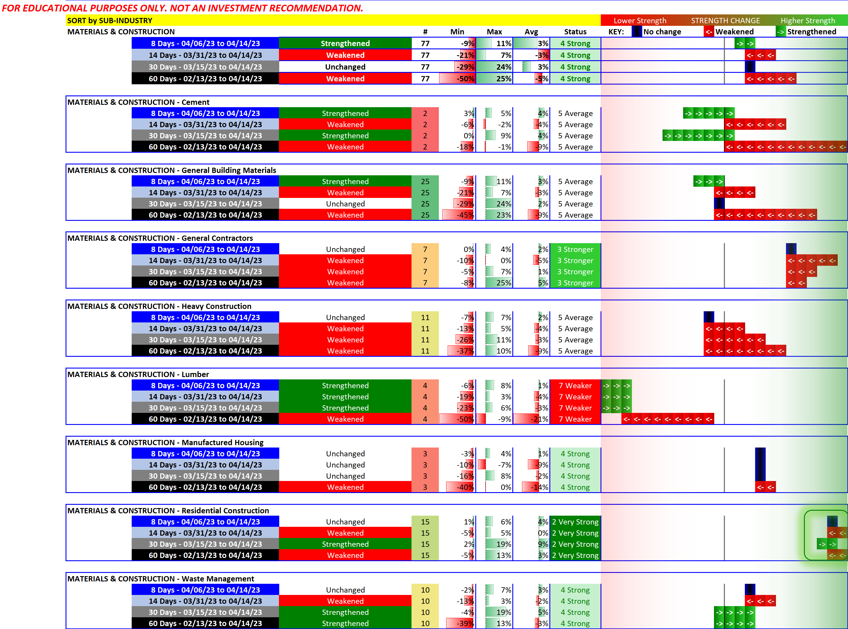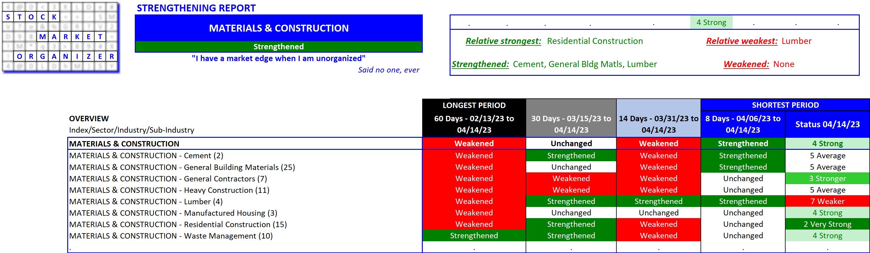 Materials & Construction (Homebuilders) strength status as of 2023-04-14?