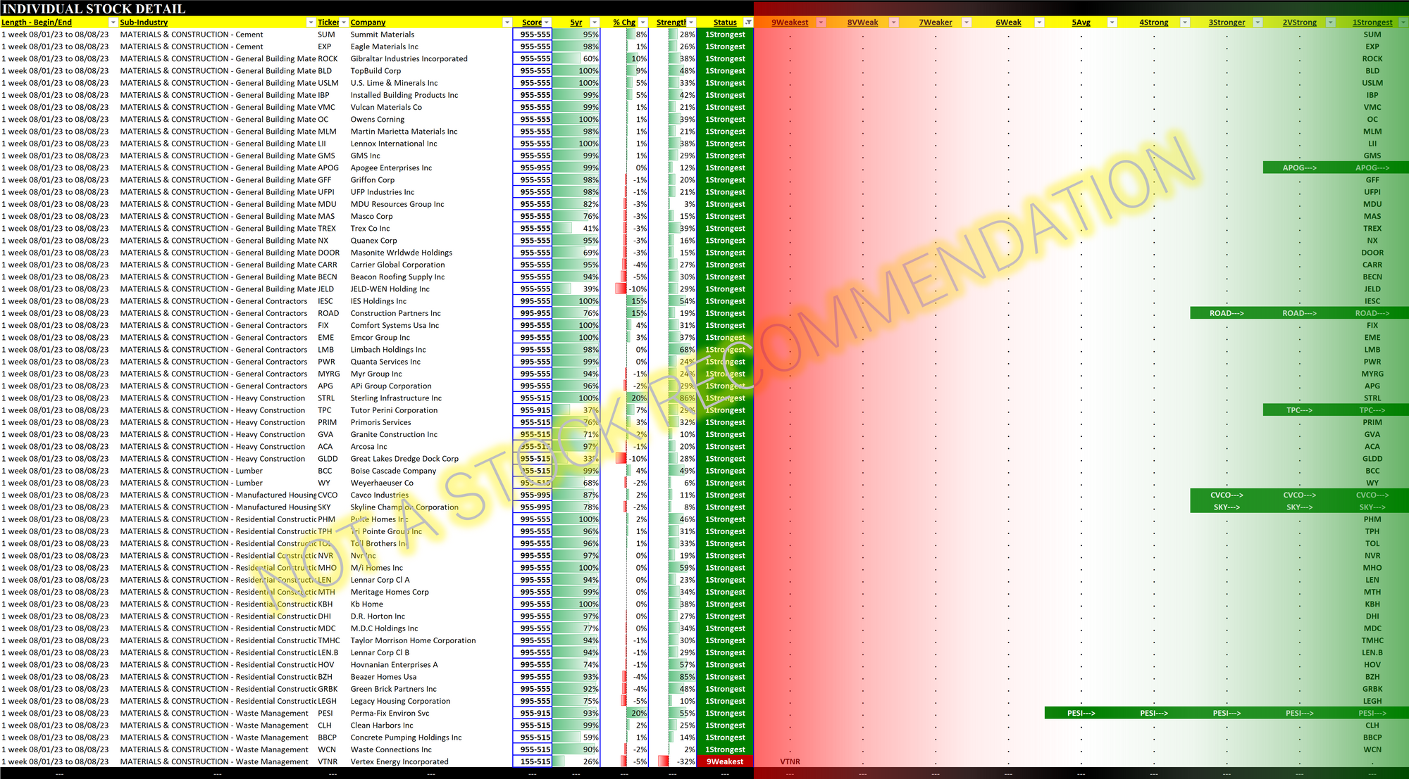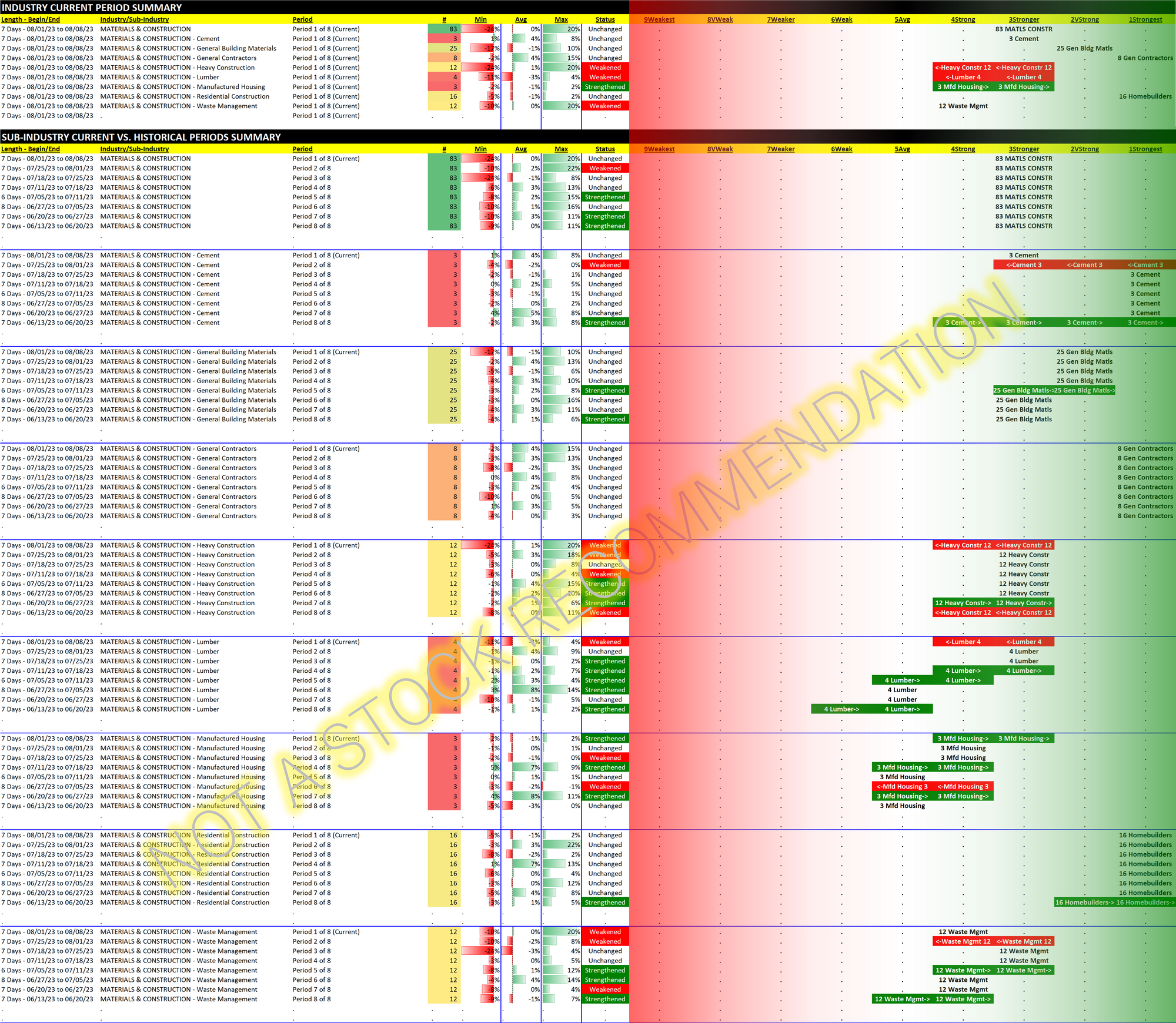 Materials/Construction incl. Homebuilders 2023-08-08: Unchanged at "Stronger" strength rating (3rd strongest of 9 levels), previous move was up