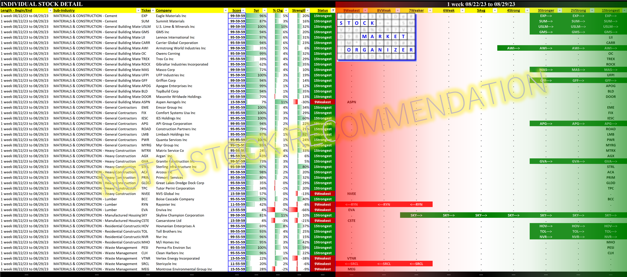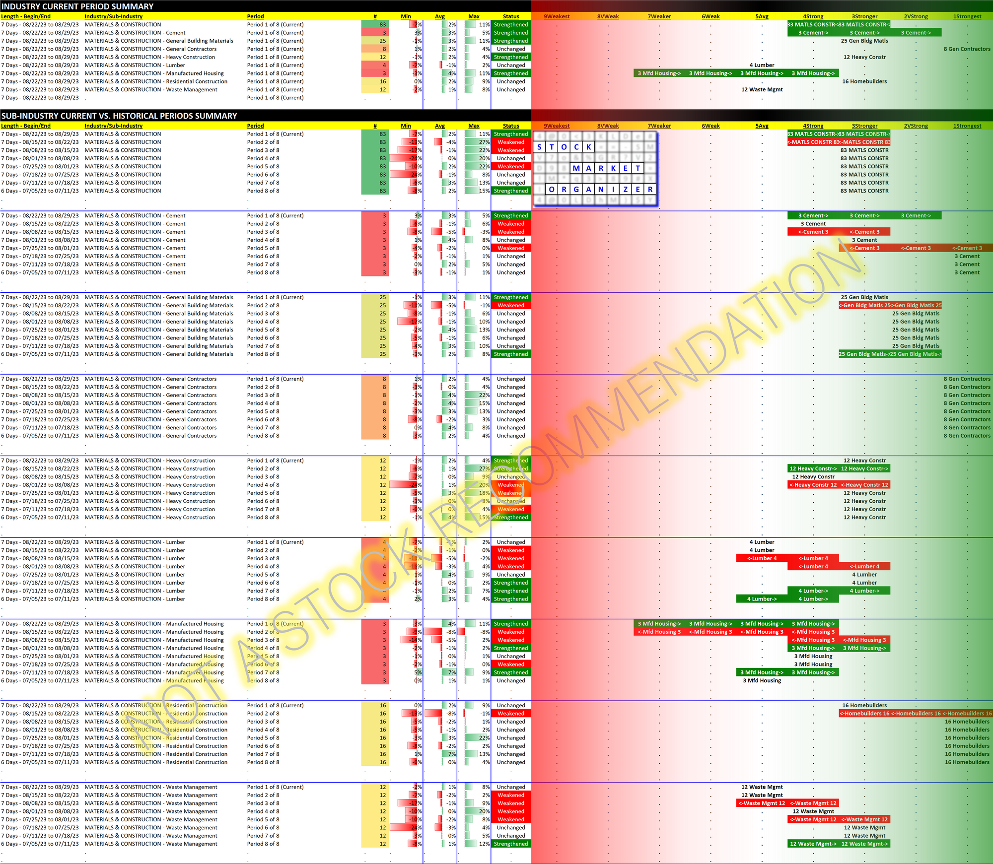 Materials/Construction incl. Homebuilders 2023-08-29: +1 to "STRONGER" strength rating (3rd strongest of 9 levels), previous move was DOWN