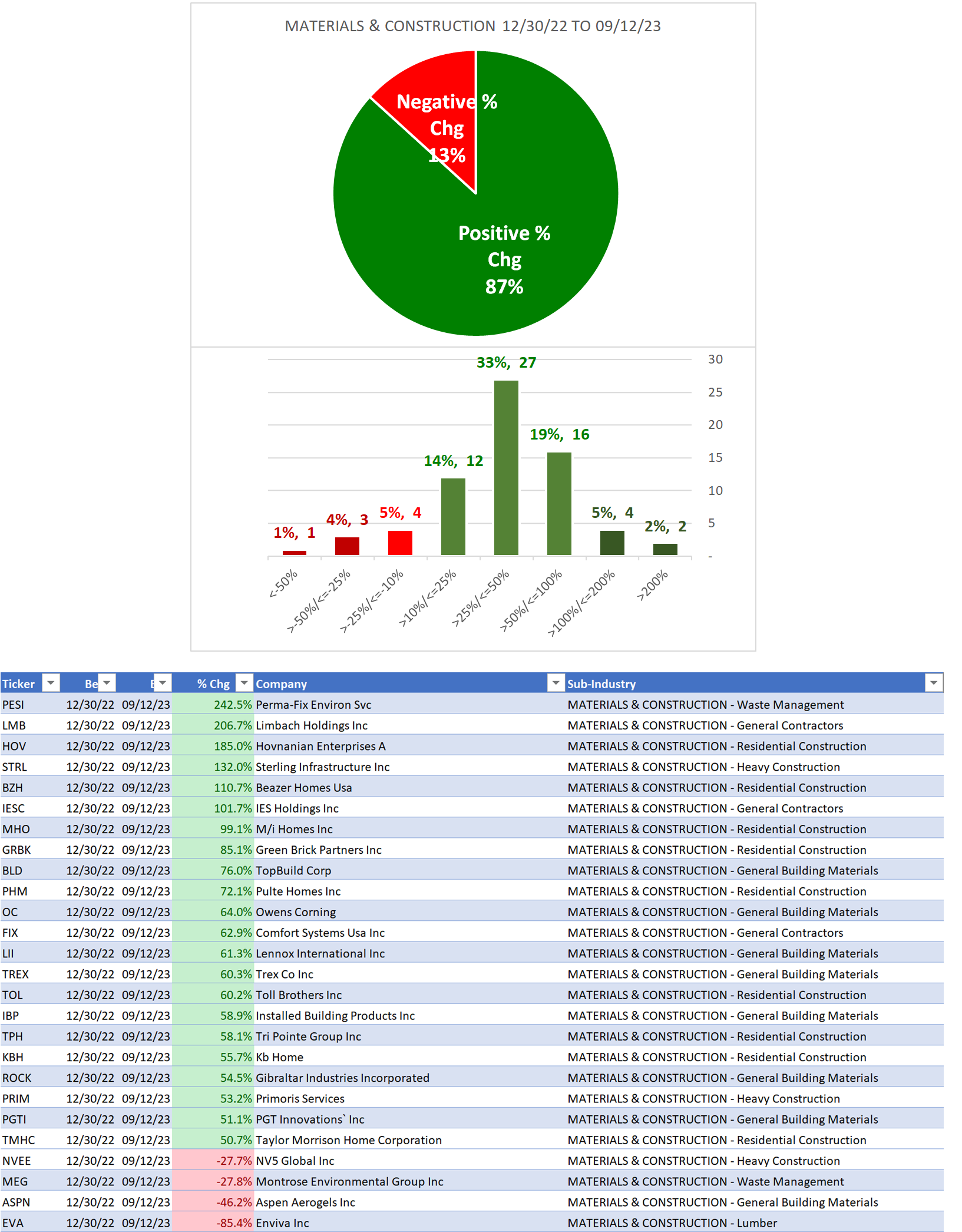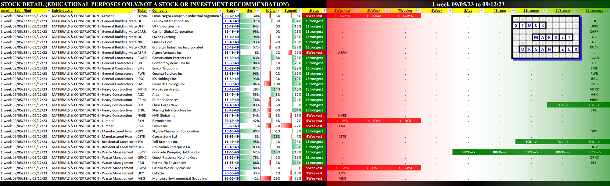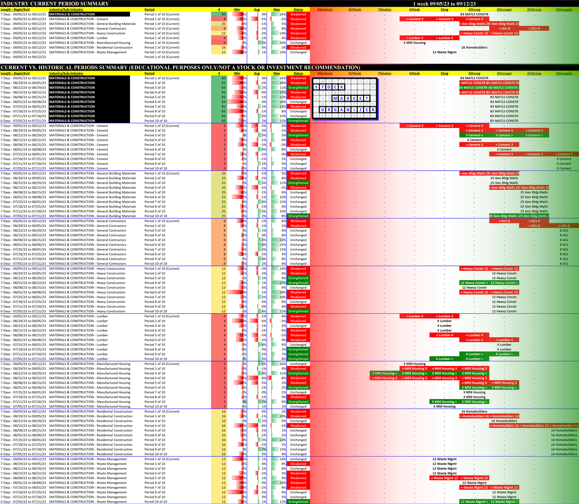 Materials/Construction incl. Homebuilders 2023-09-12: Unchanged at "STRONG" strength rating (4th strongest of 9 levels), previous move was DOWN