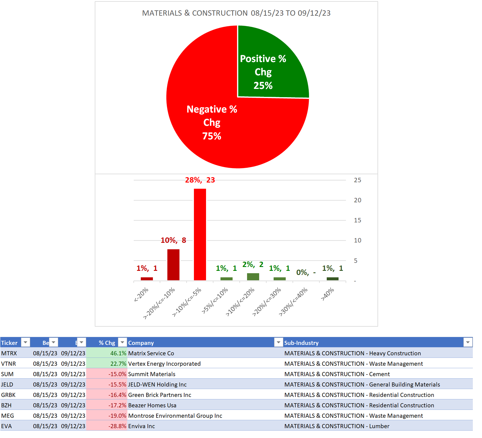 Bottom line: Materials & Construction has generally been flip-flopping over the previous 3 weeks before settling down this week.