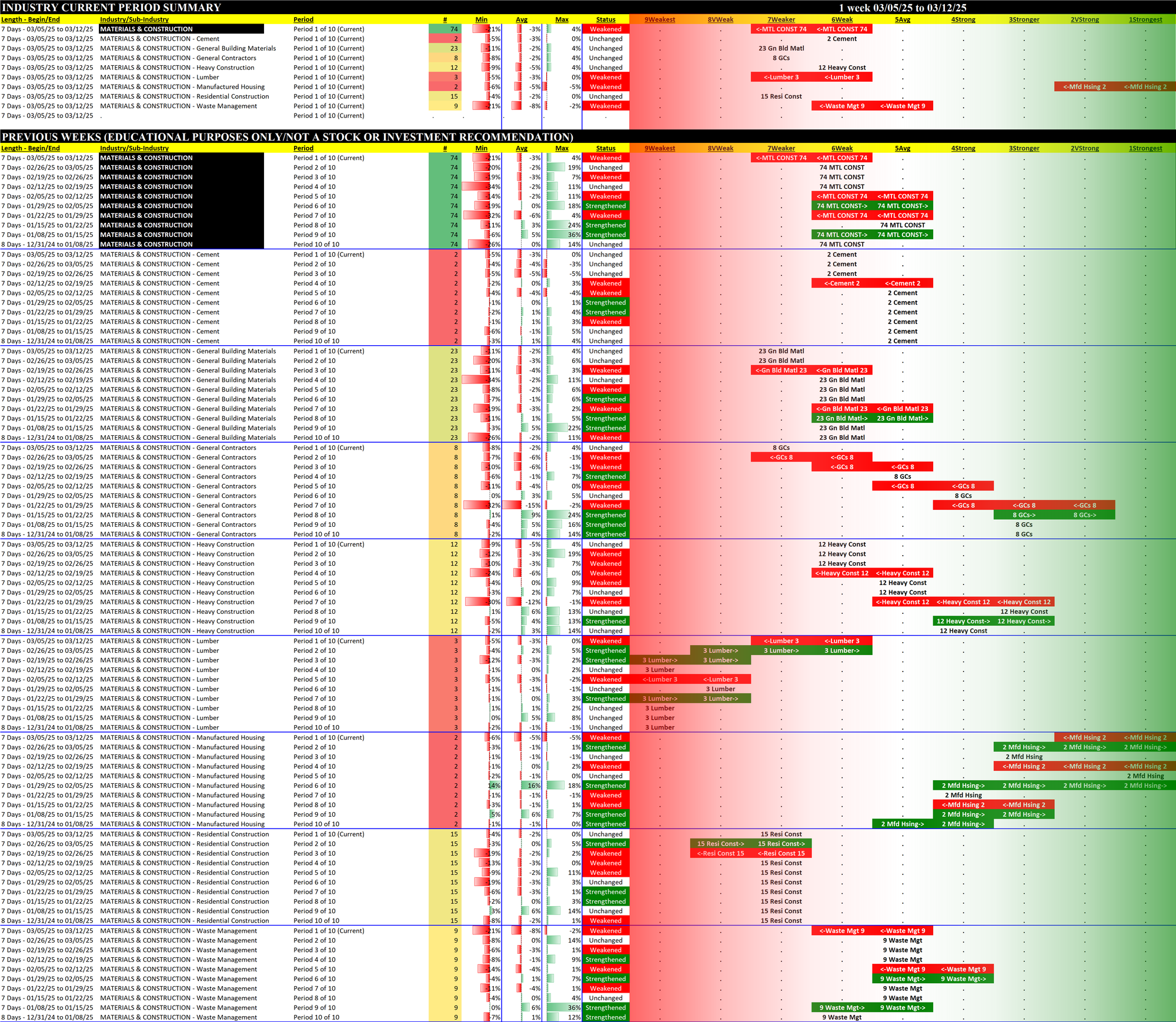 🔹 An objective measurement of industry strengthening and weakening so you can objectively compare strength and weakness across/within industries and sub-industries.