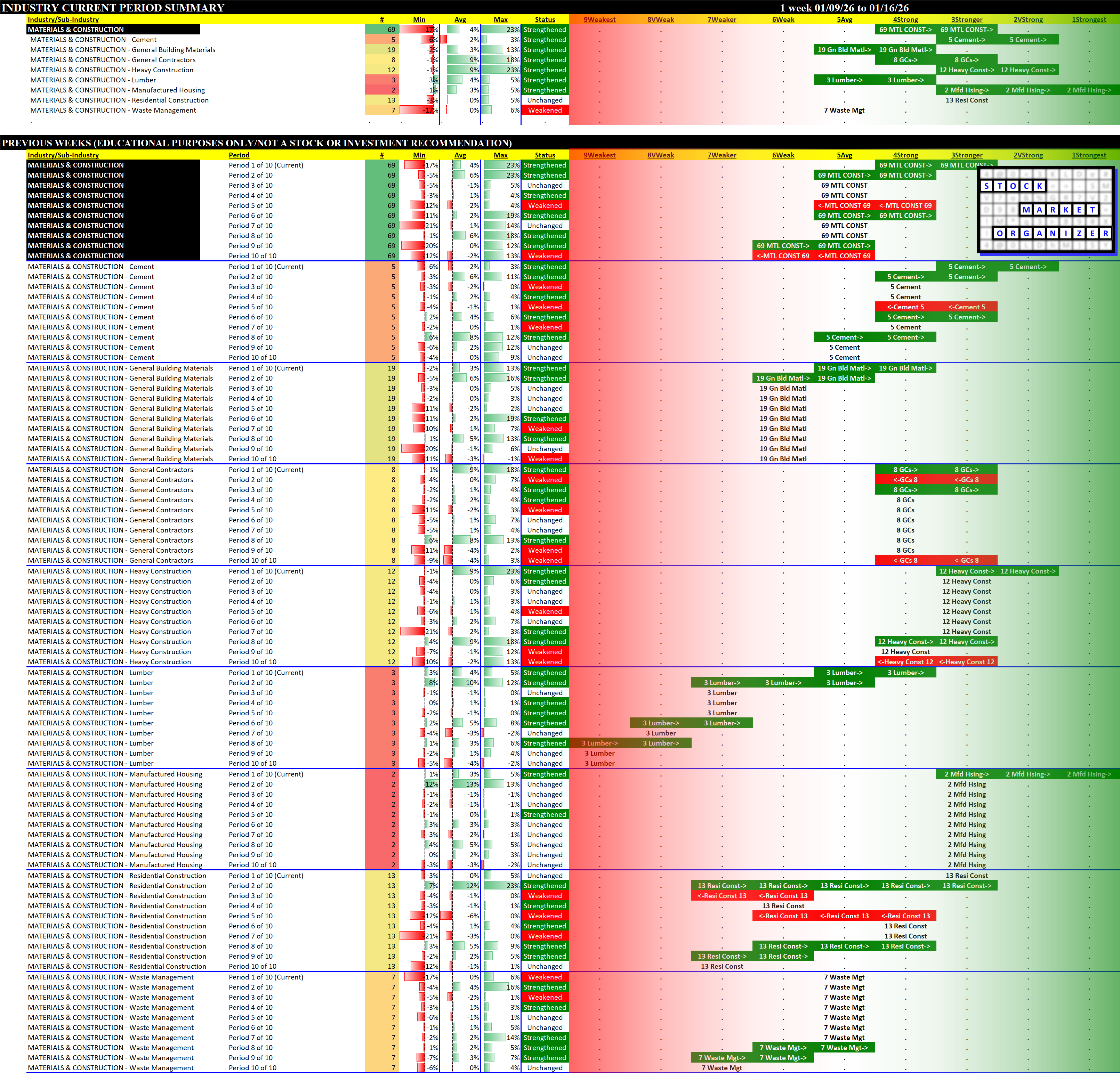 Materials & Construction Industry Fri 2026-01-16: Strengthened/0 (4Strong)
