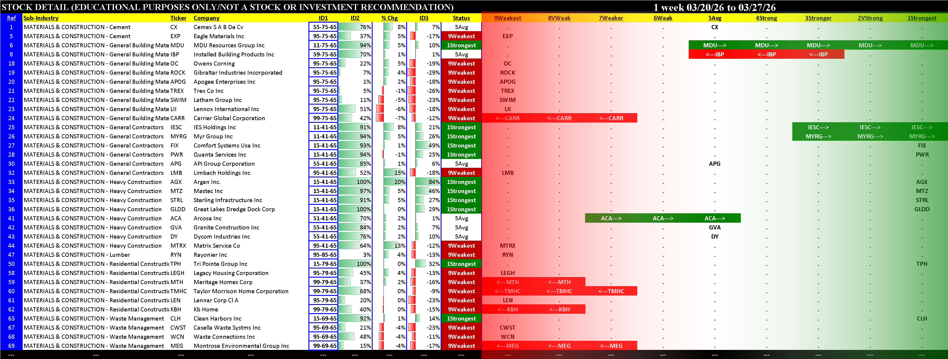 Materials & Construction Industry Fri 2026-03-27: Unchanged (6Weak)