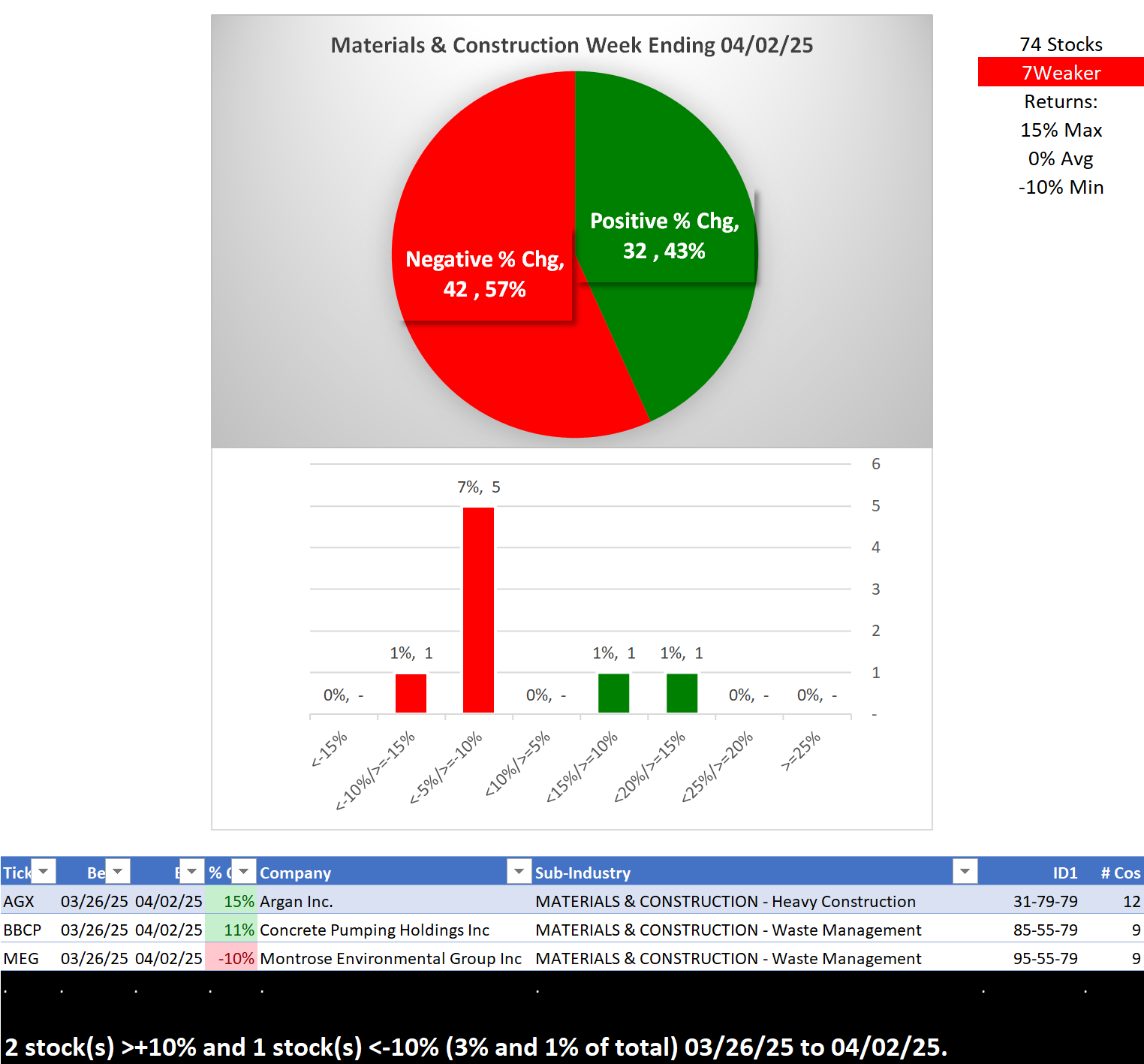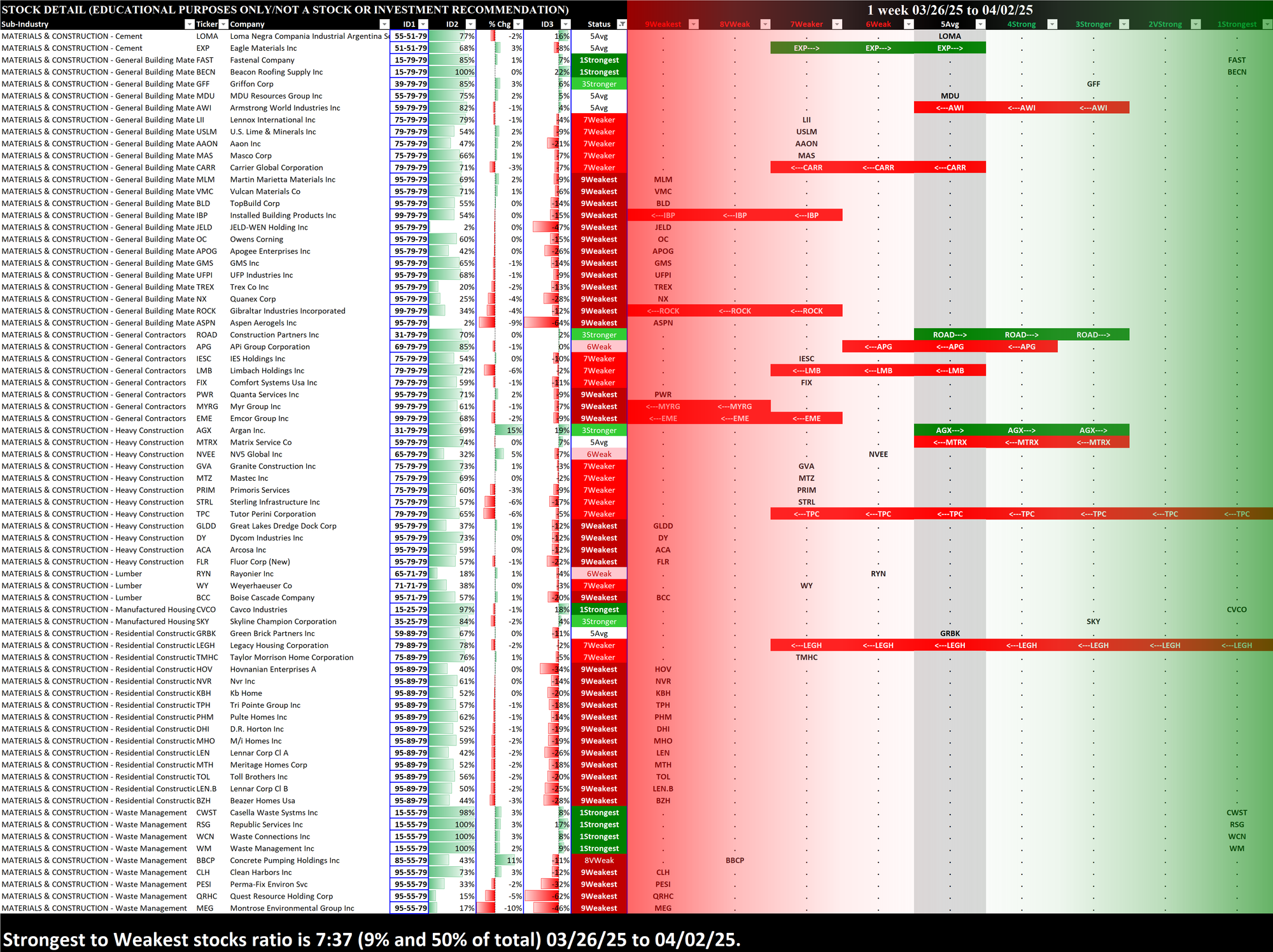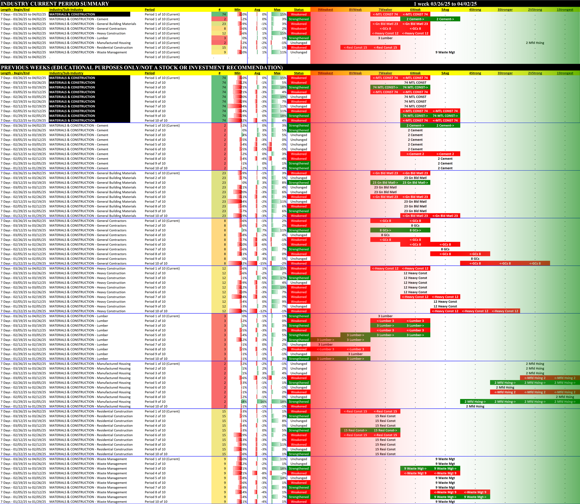 Here's last week's Materials/Construction strength report from March 26, 2025.