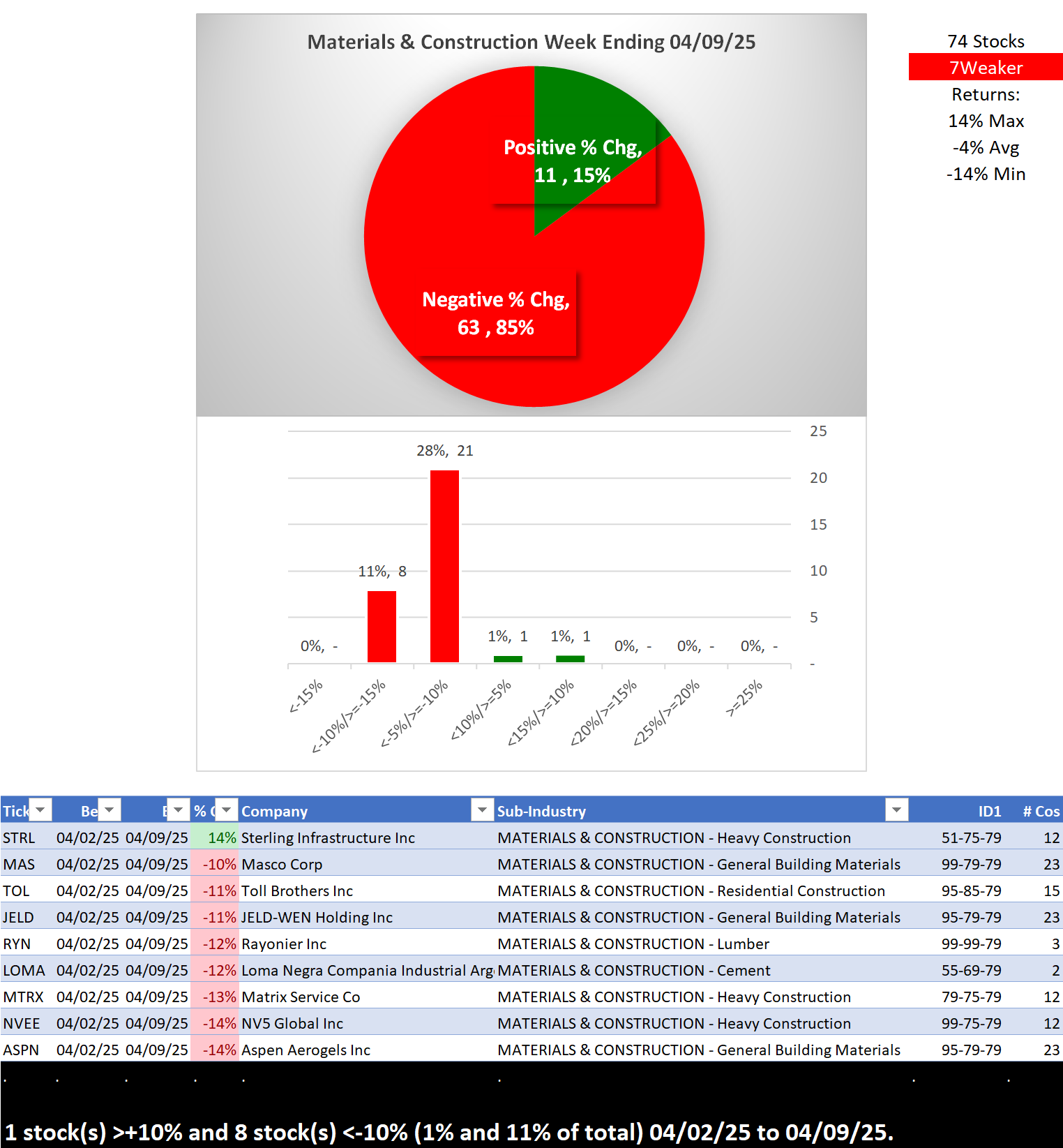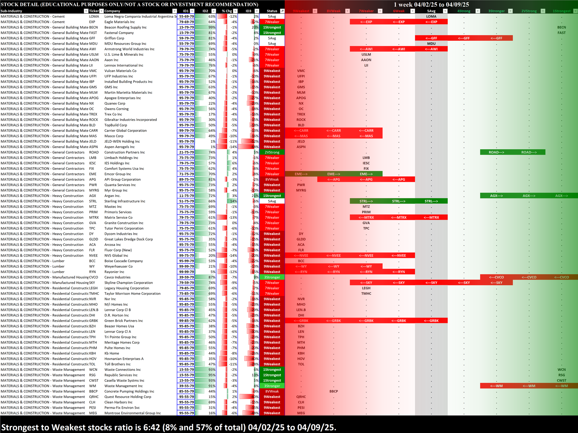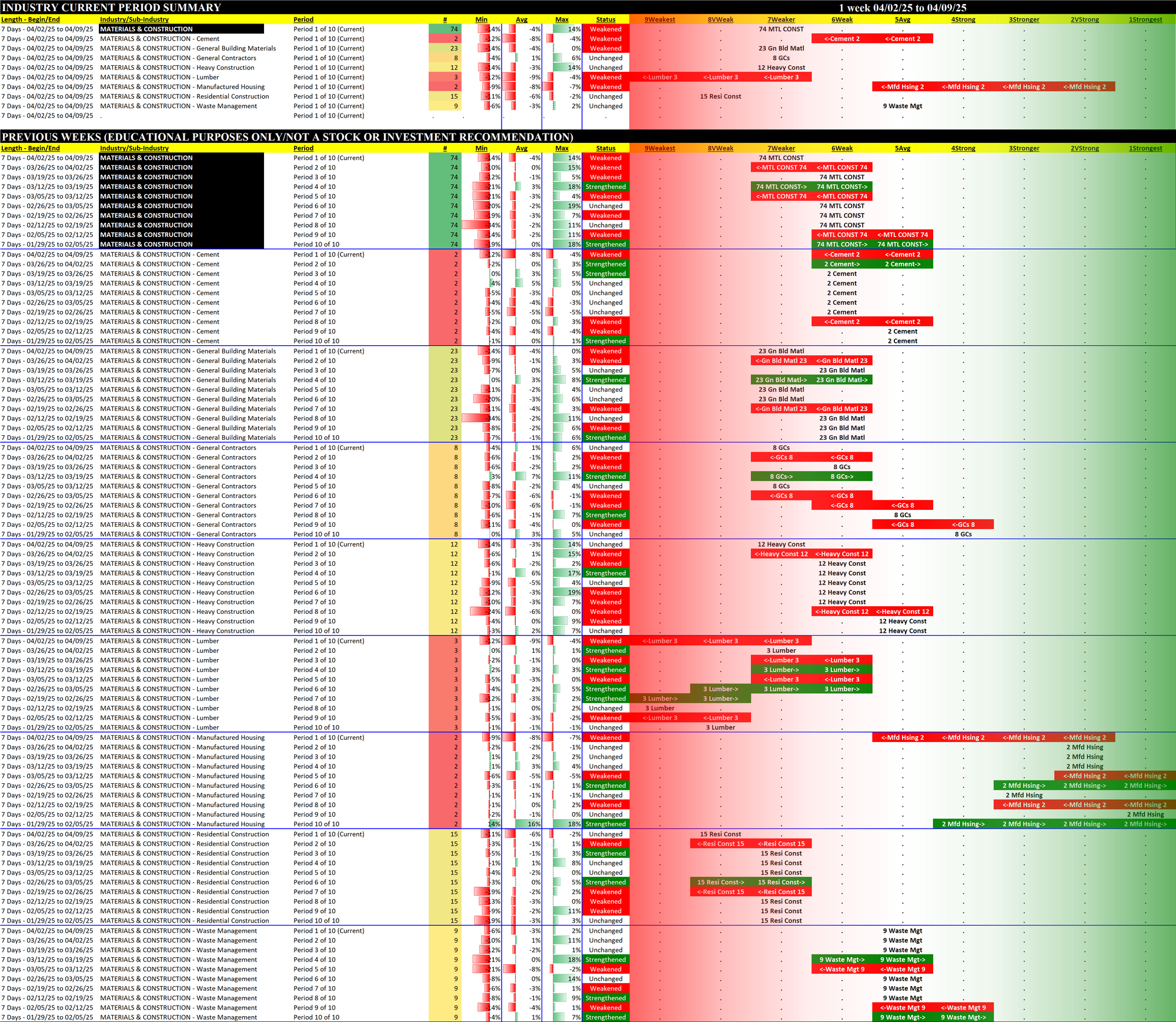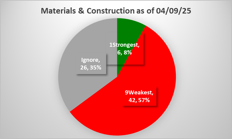 Here is last week's Materials/Construction strength report from April 2, 2025.