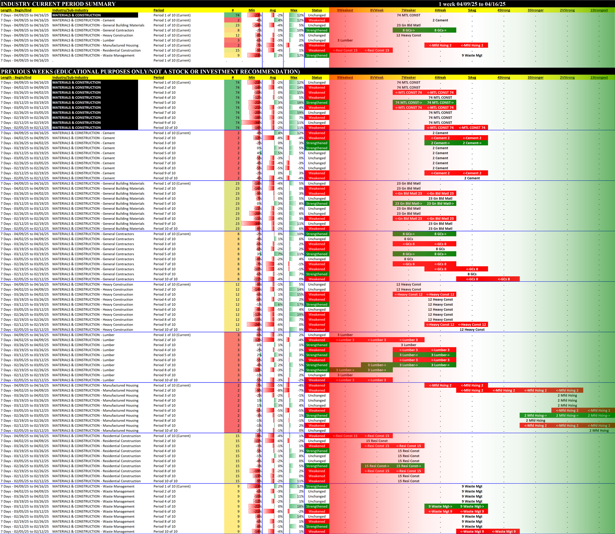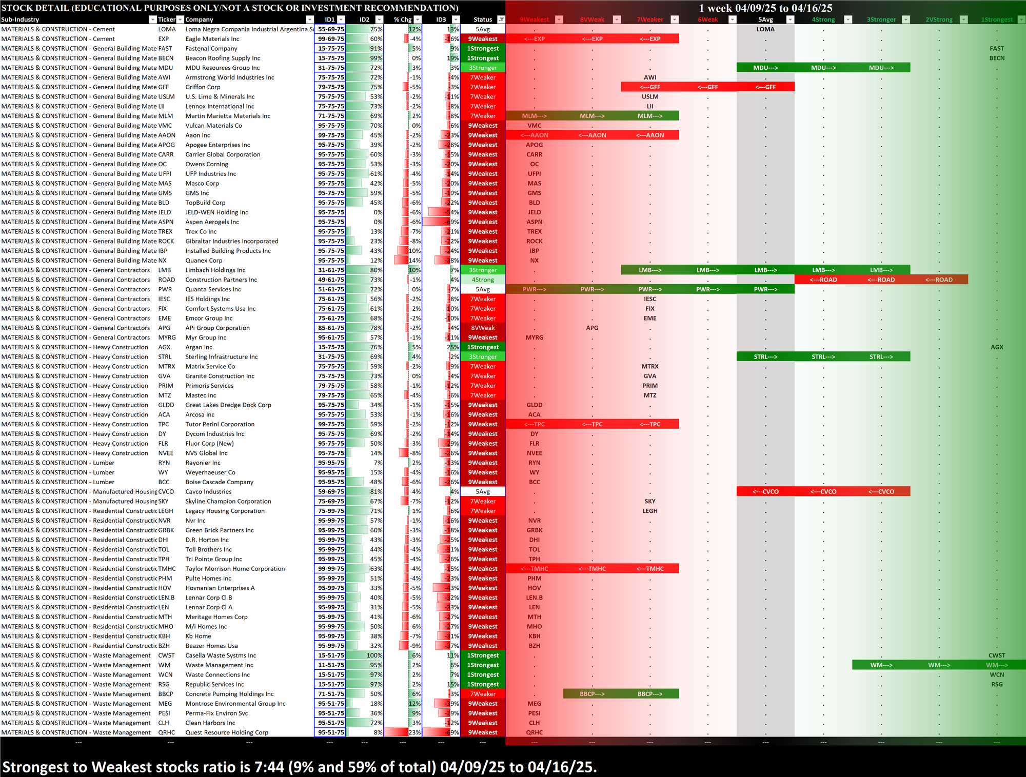 Materials/Construction Industry Wed 2025-04-16: 7Weaker strength rating (Unchanged)