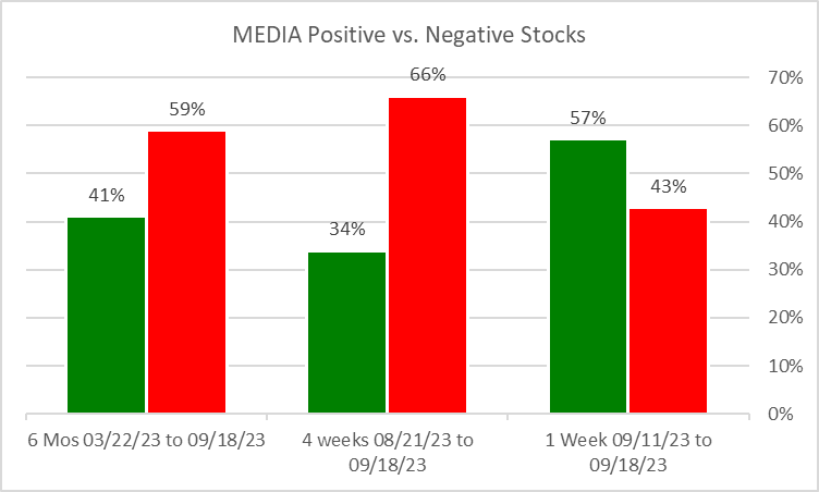 Media 2023-09-18: Unchanged at WEAK strength rating (6th strongest of 9 levels), previous move was DOWN