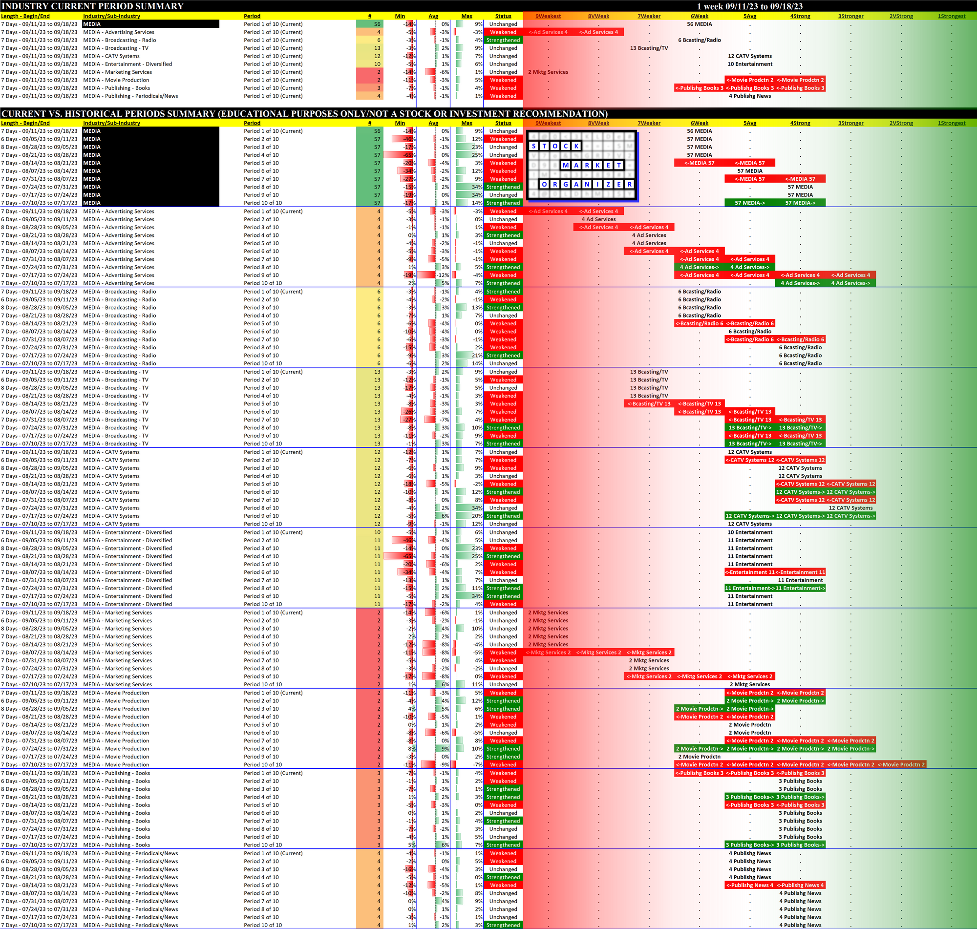 10-Week Week-by-Week Industry/Sub-industry Strength Comparison