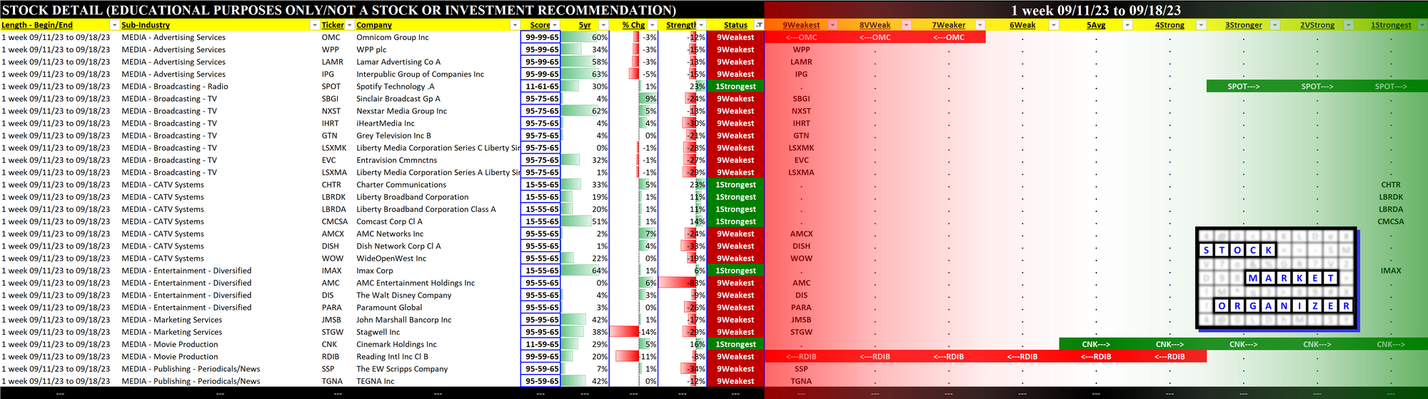 What: stocks currently rated Strongest/Weakest (highest/lowest of 9 strength ratings)