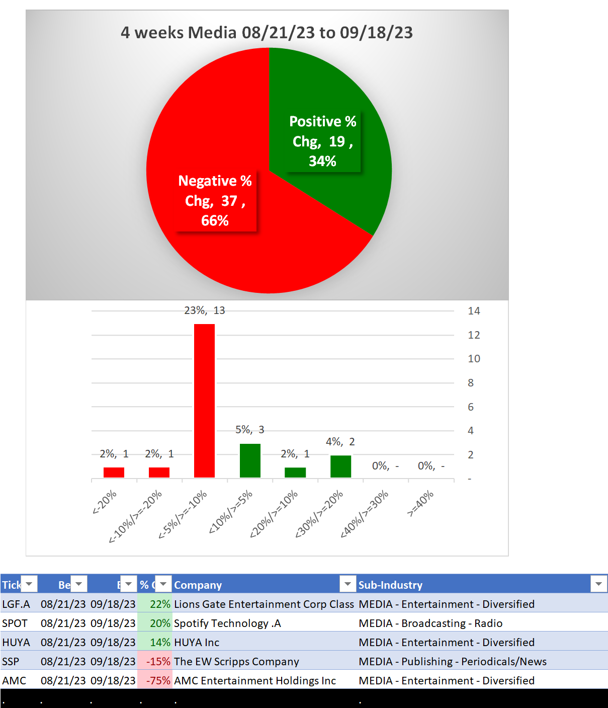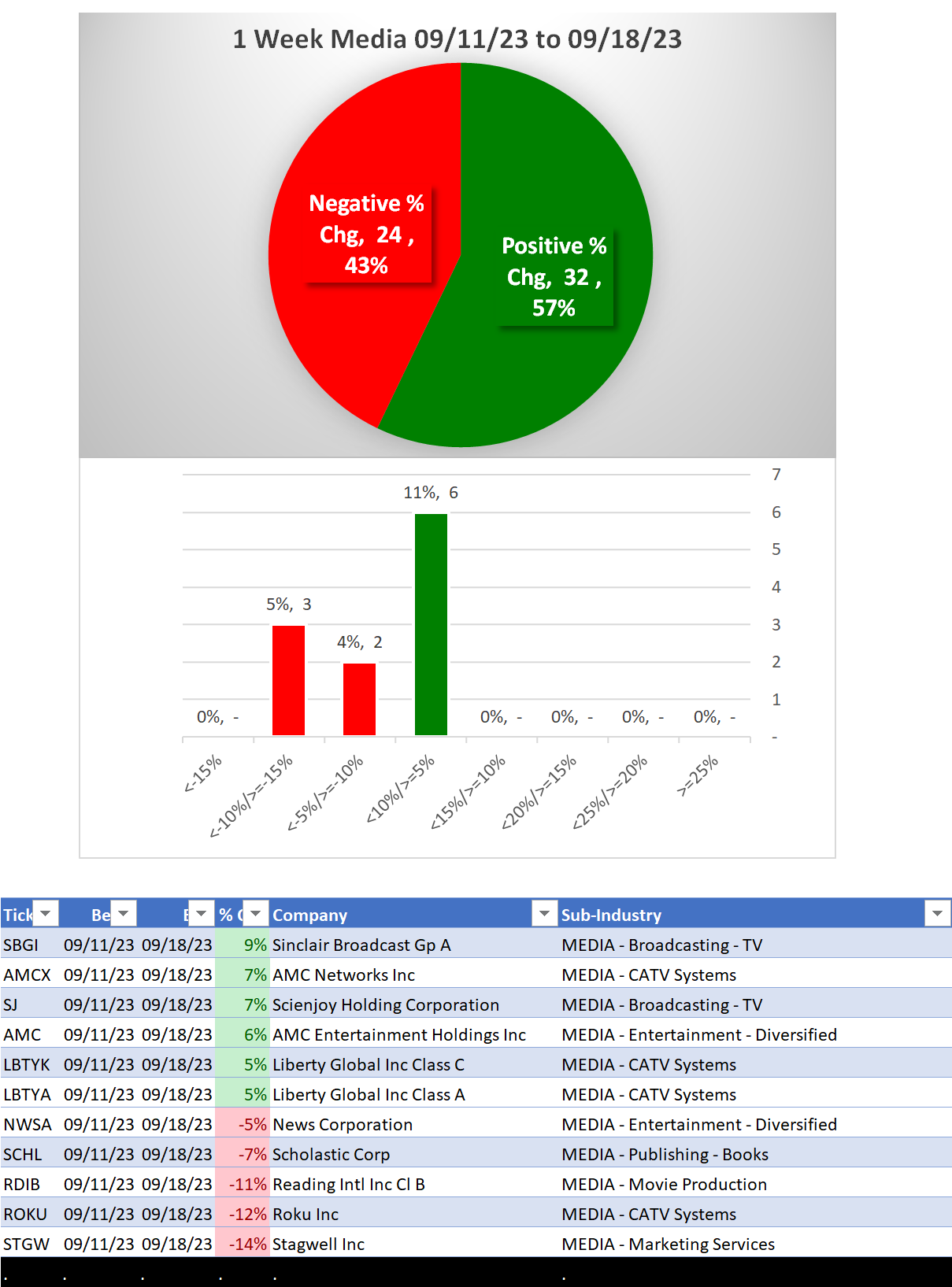 What: recent week-by-week strength changes for the industry and each underlying sub-industry