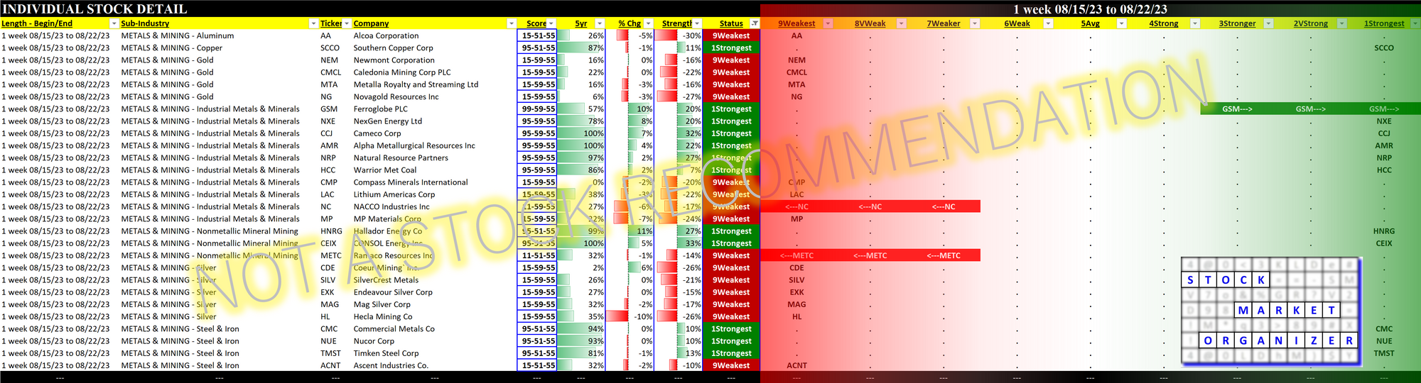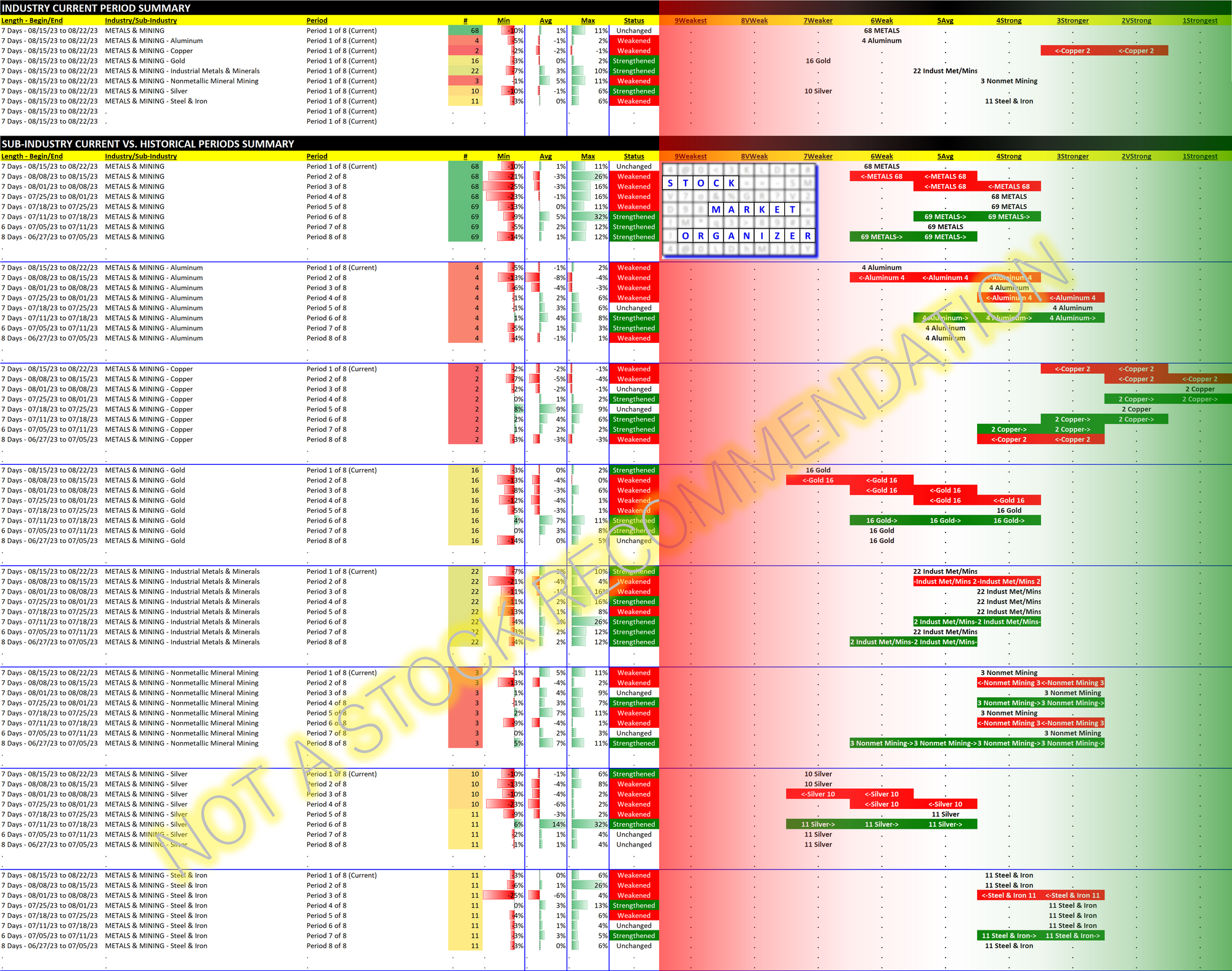 Metals 2023-08-22: UNCHANGED at "WEAK" strength rating (6th strongest of 9 levels), previous move was DOWN