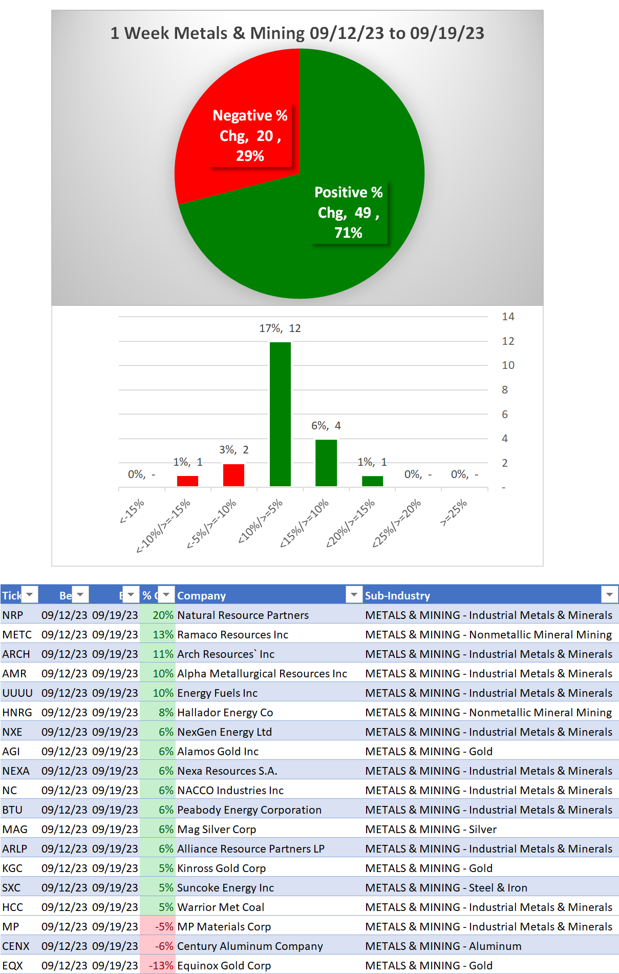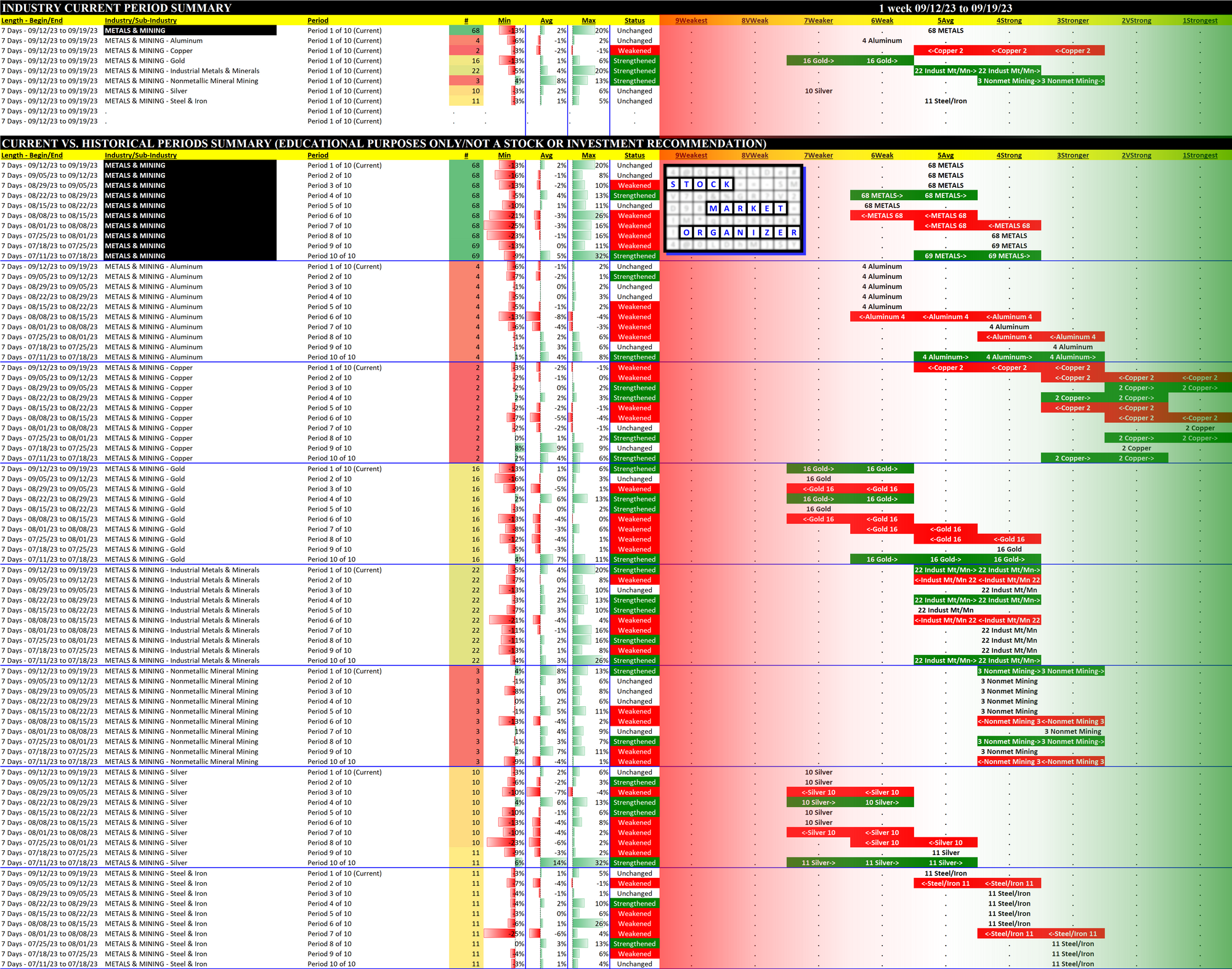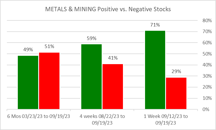 Metals & Mining 2023-09-19: Unchanged at AVERAGE strength rating (5th strongest of 9 levels), previous move was UP