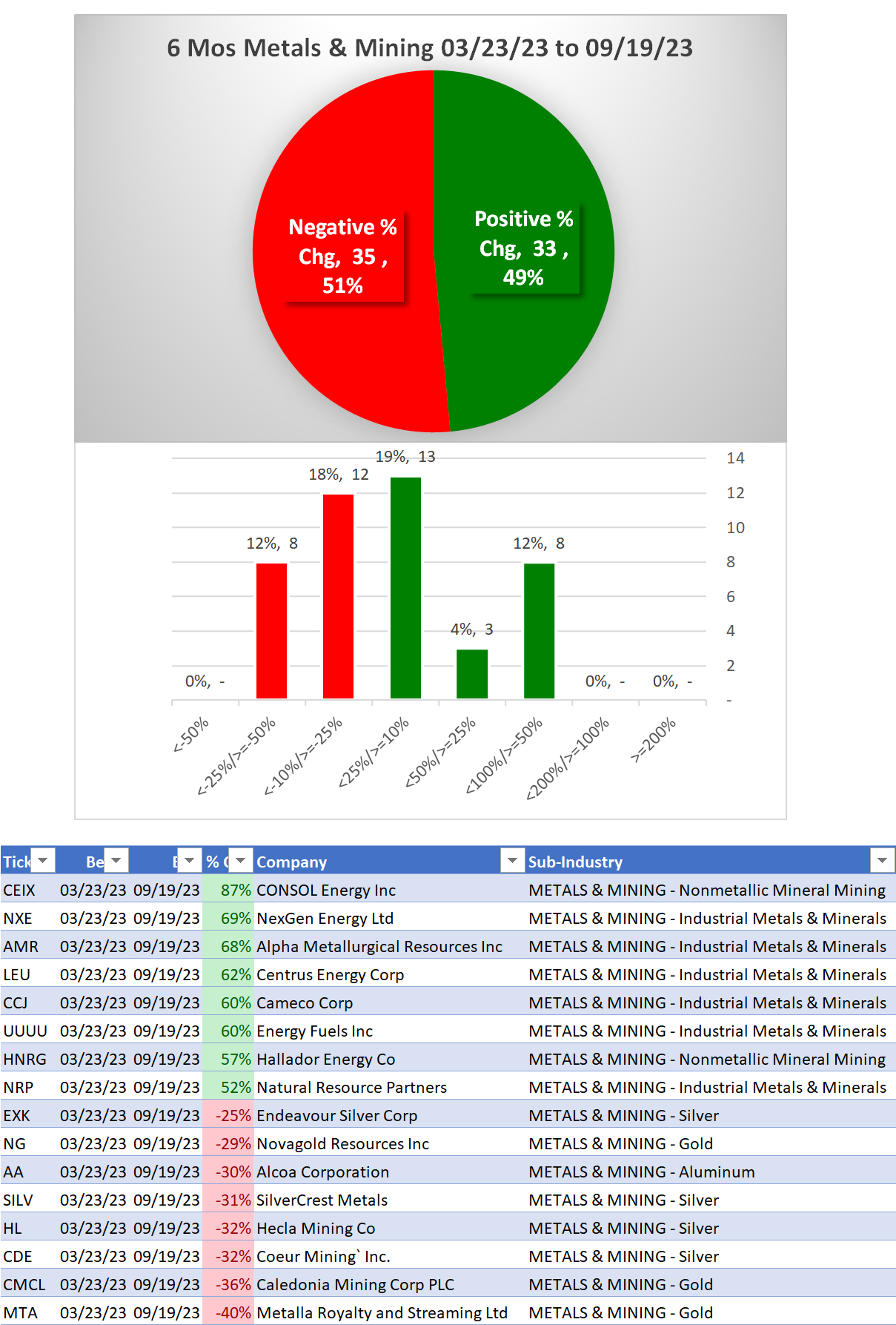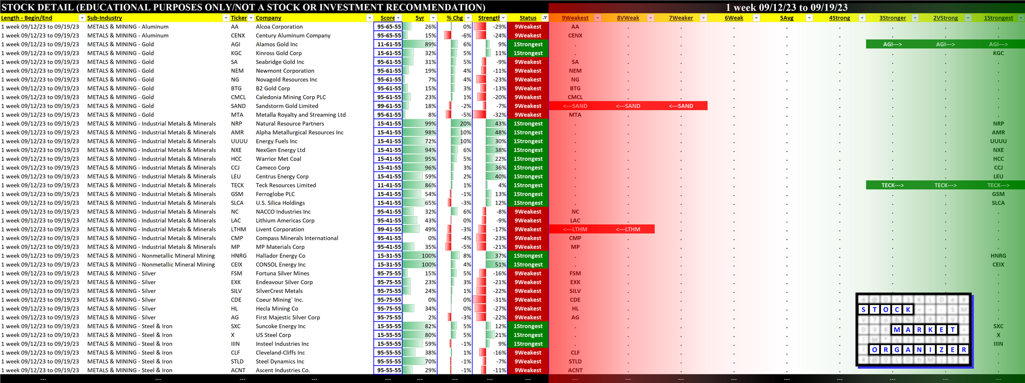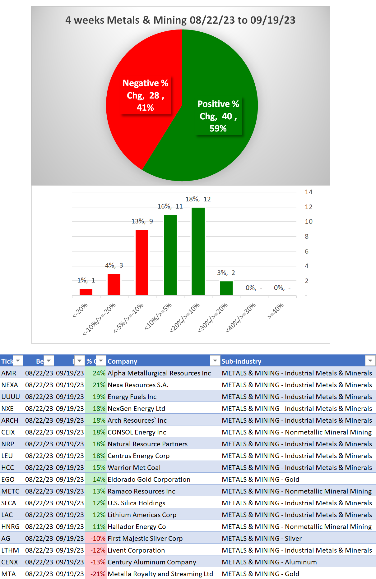 Metals & Mining 2023-09-19: Unchanged at AVERAGE strength rating (5th strongest of 9 levels), previous move was UP