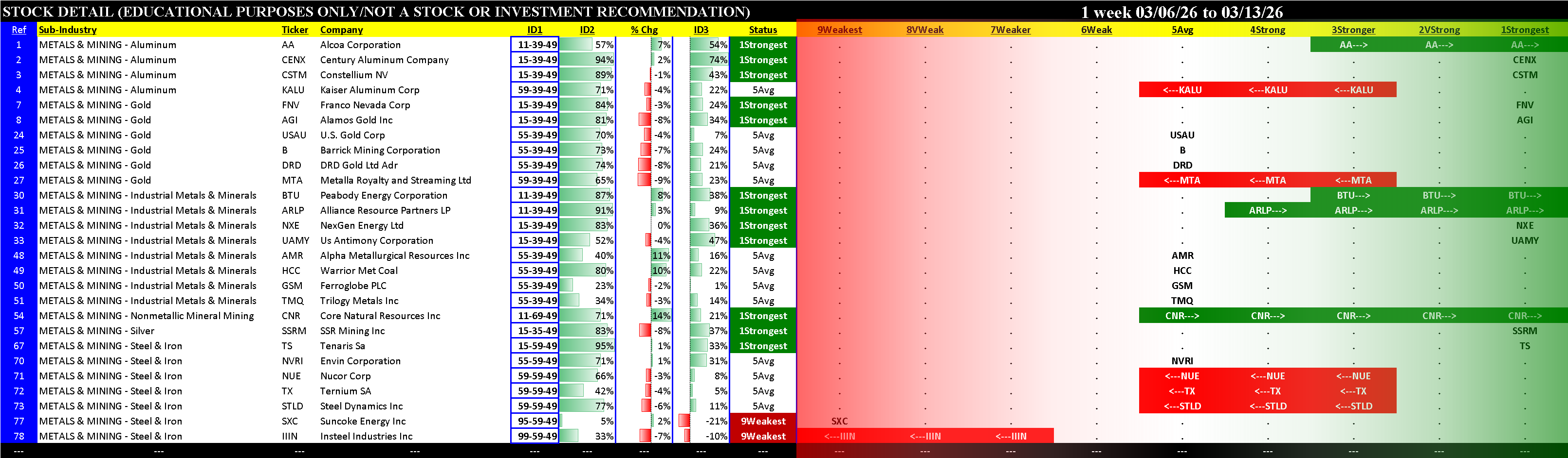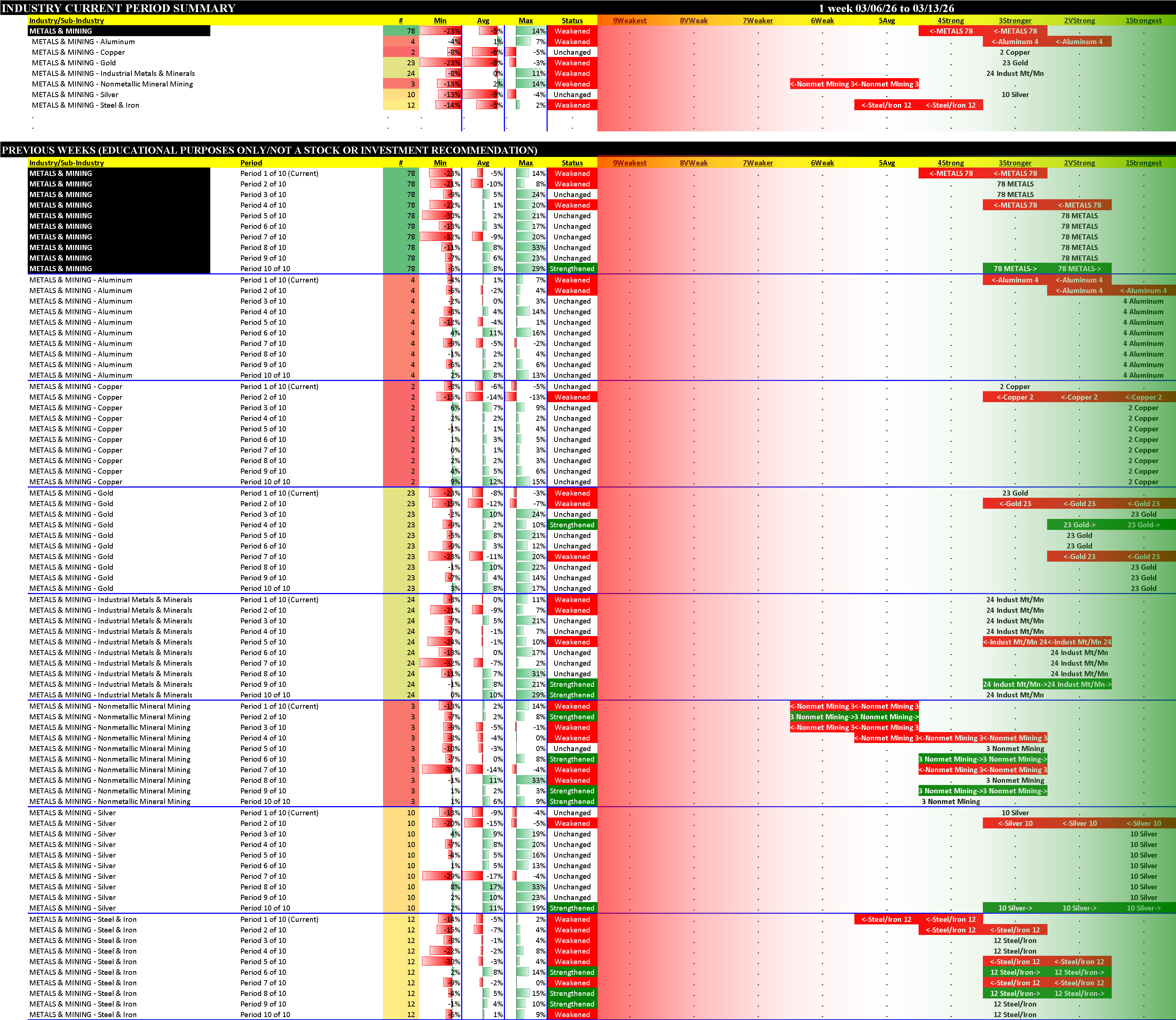 Metals & Mining Industry Tue 2026-03-13: Weakened/-1 (4Strong)
