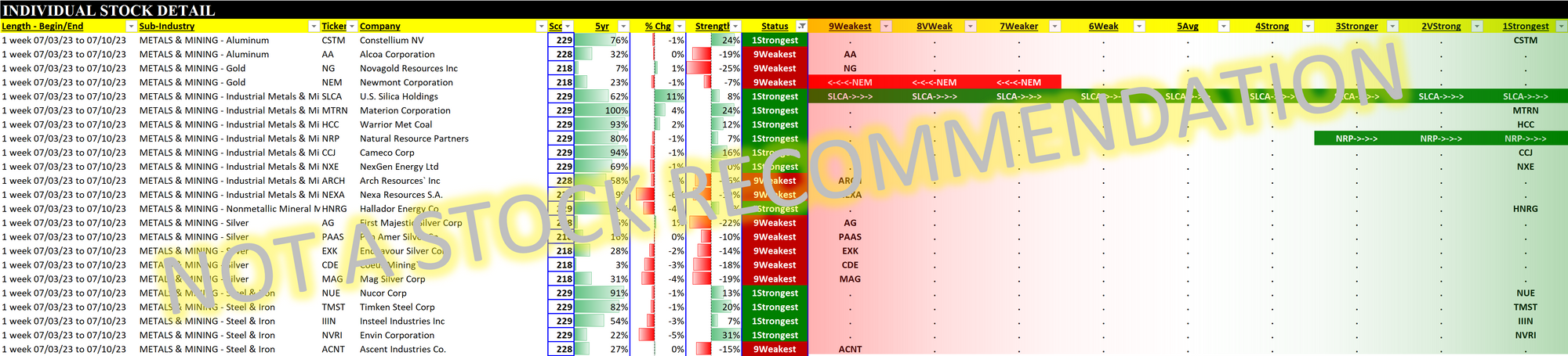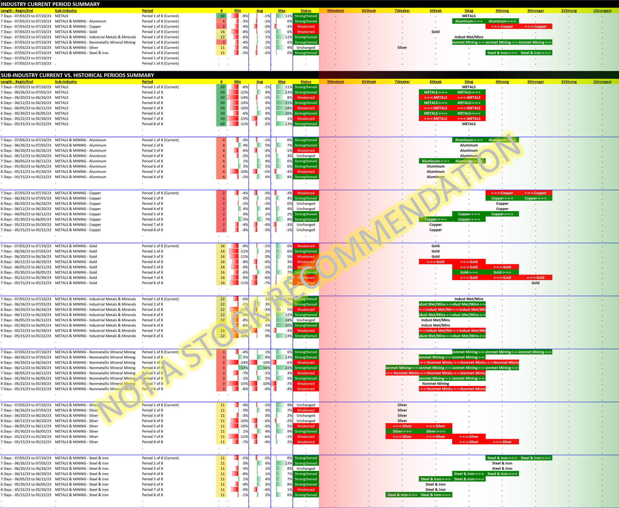 Metals 2023-07-10: unchanged "Average" strength rating (5th strongest of 9 levels), previous move was up
