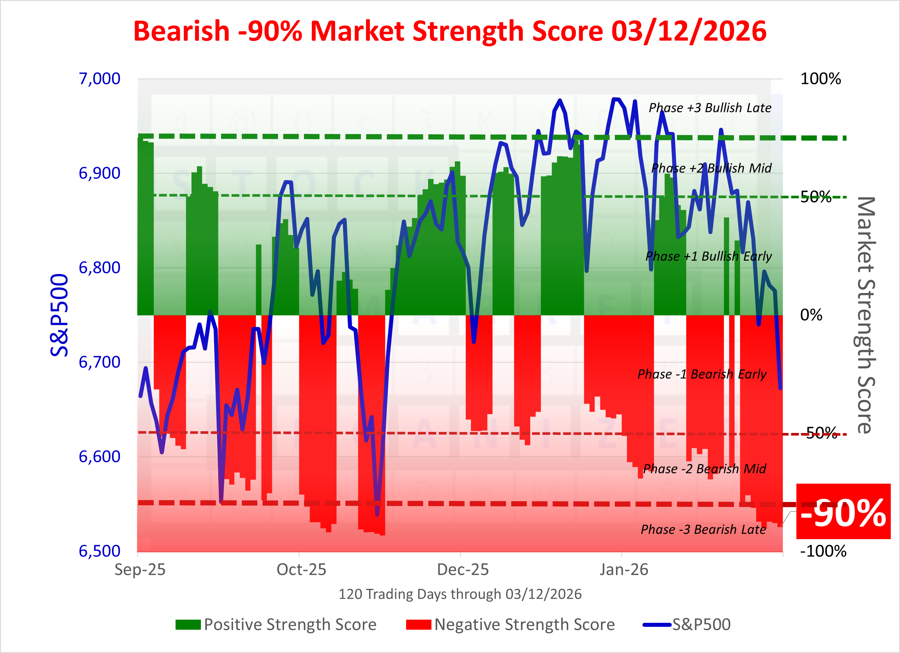 NEGATIVE Market Strength Score Thu 2026-03-12 (Phase -3 Bearish Advanced -90%)
