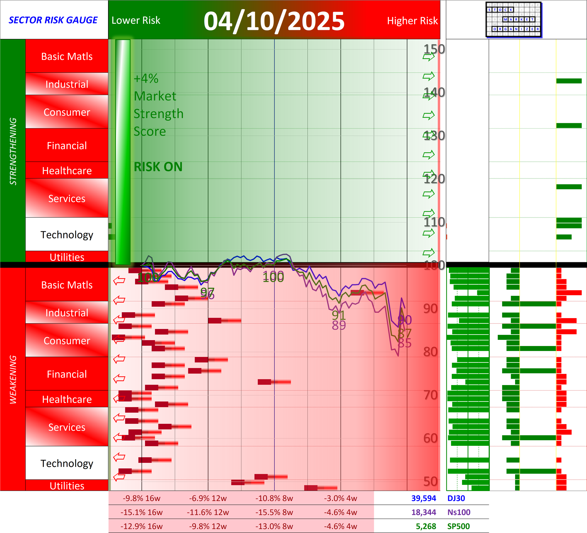 - The closer to +100% the less room there is to run, but a high positive reading still means Risk On. ("The market can remain irrational longer than you can remain solvent." Quoting either John Maynard Keynes or A. Gary Schilling)