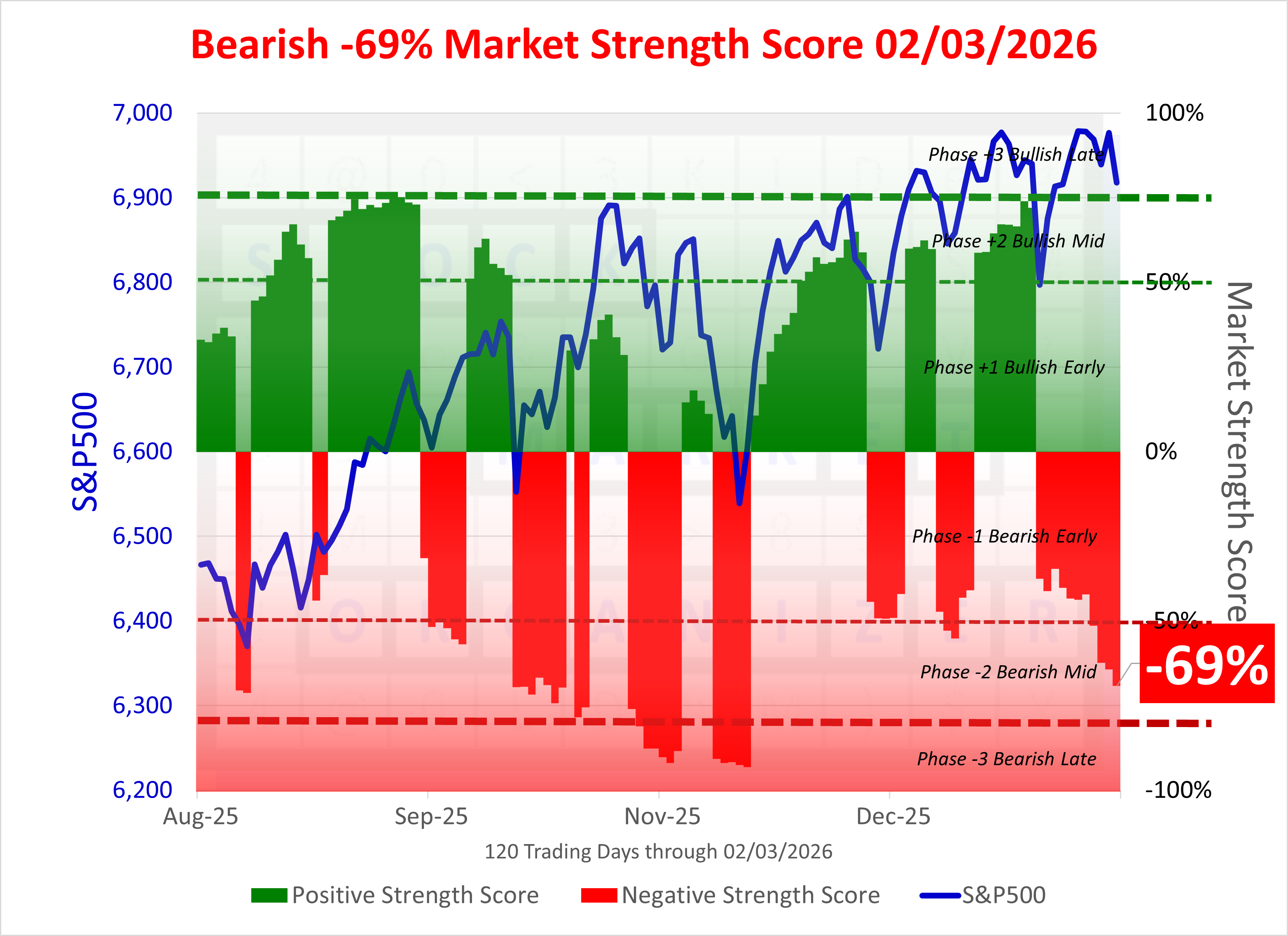 NEGATIVE Market Strength Score Tue 2026-02-03 (Phase -2 Bearish Mid -69%)