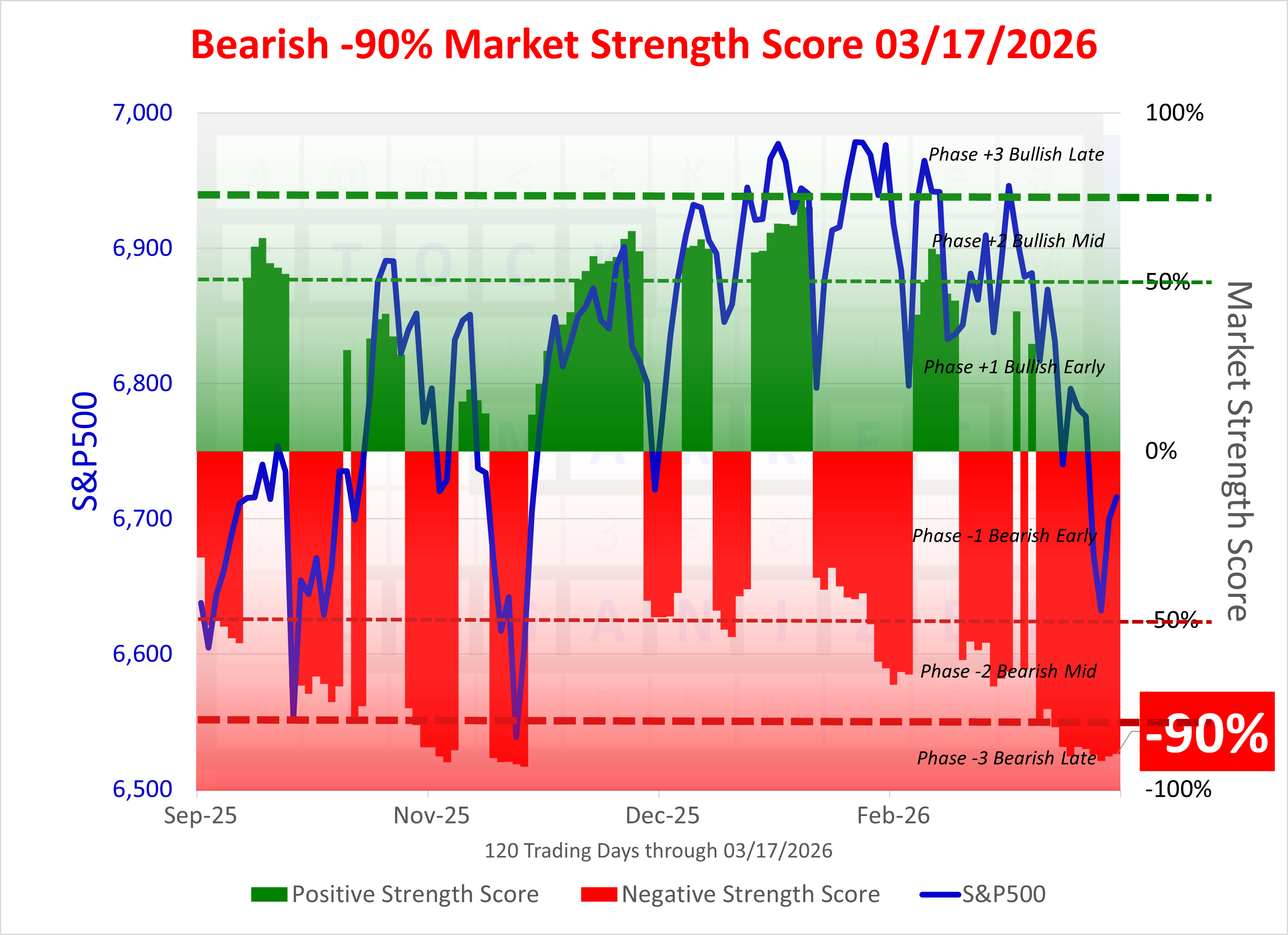 NEGATIVE Market Strength Score Tue 2026-03-17 (Phase -3 Bearish Advanced -90%)
