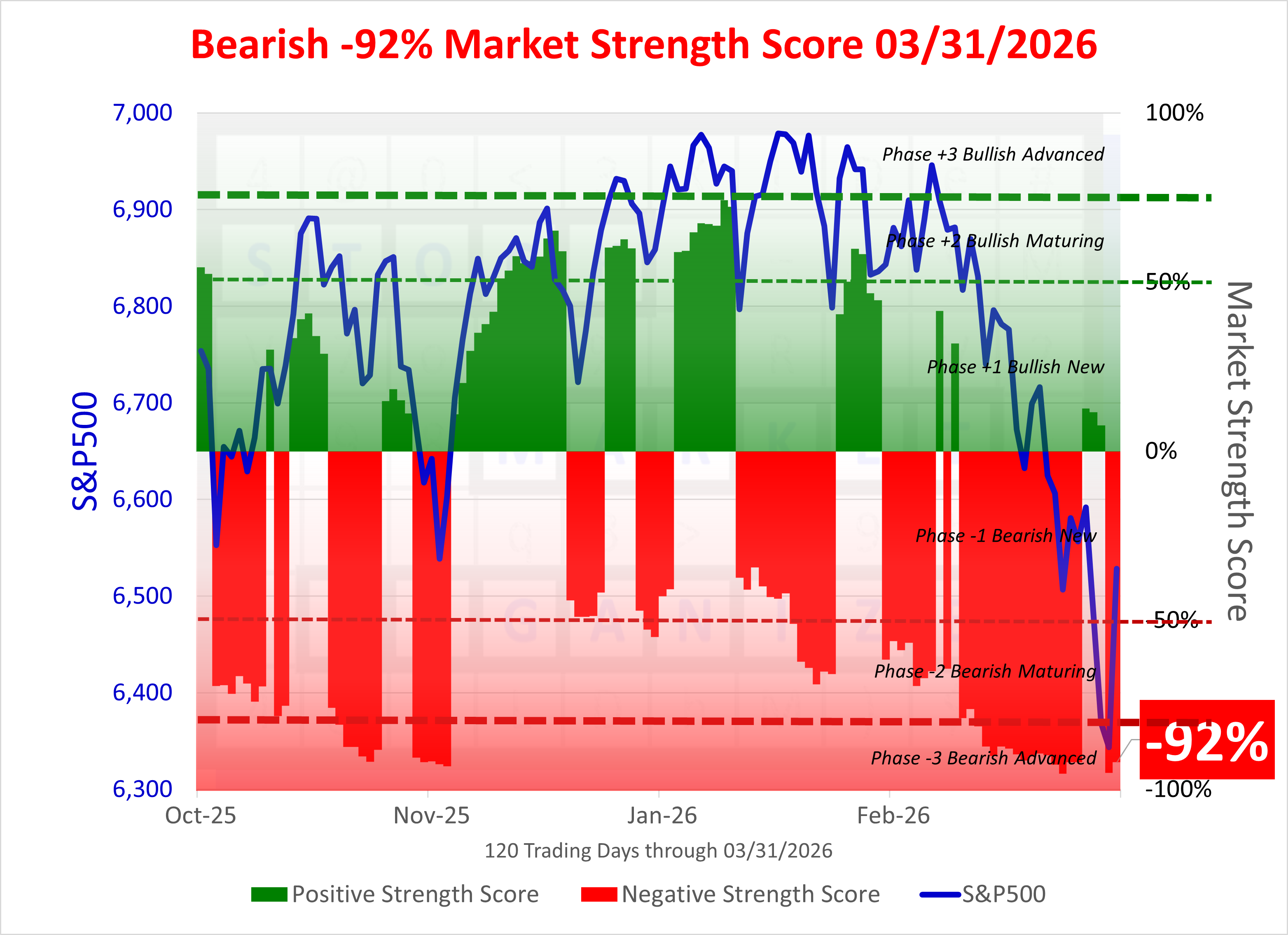 NEGATIVE Market Strength Score Tue 2026-03-31 (Phase -3 Bearish Advanced -92%)