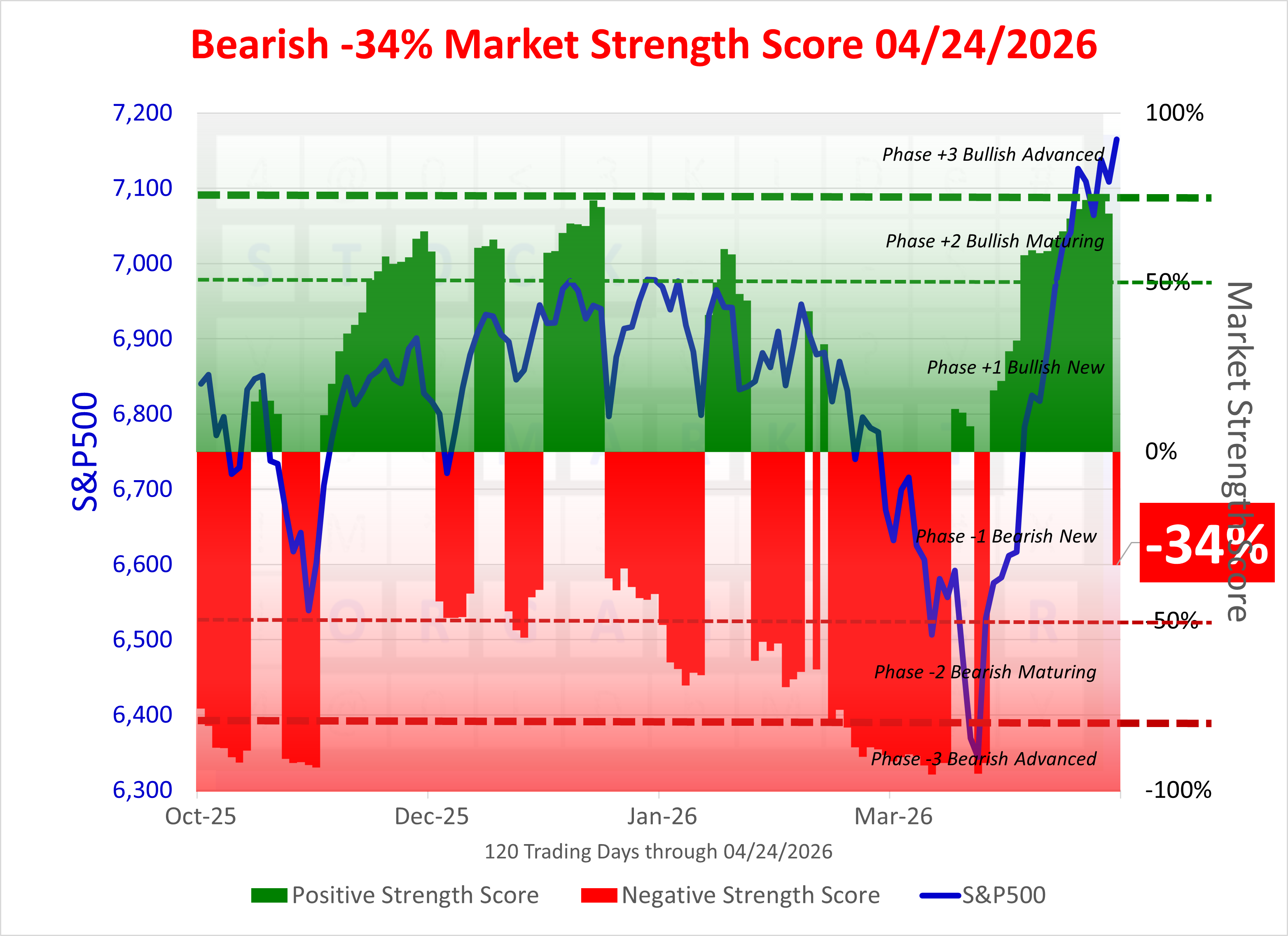 NEW - NEGATIVE Market Strength Score Fri 2026-04-24 (Phase -1 Bearish New -34%)