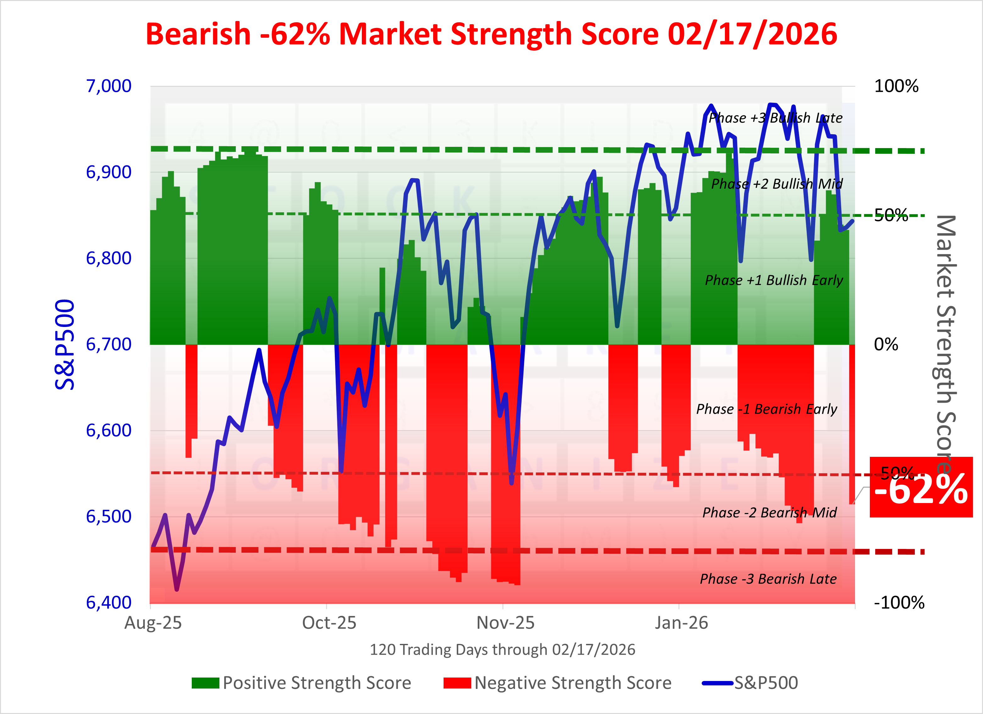 NEW - NEGATIVE Market Strength Score Tue 2026-02-17 (Phase -2 Bearish Mid -62%)