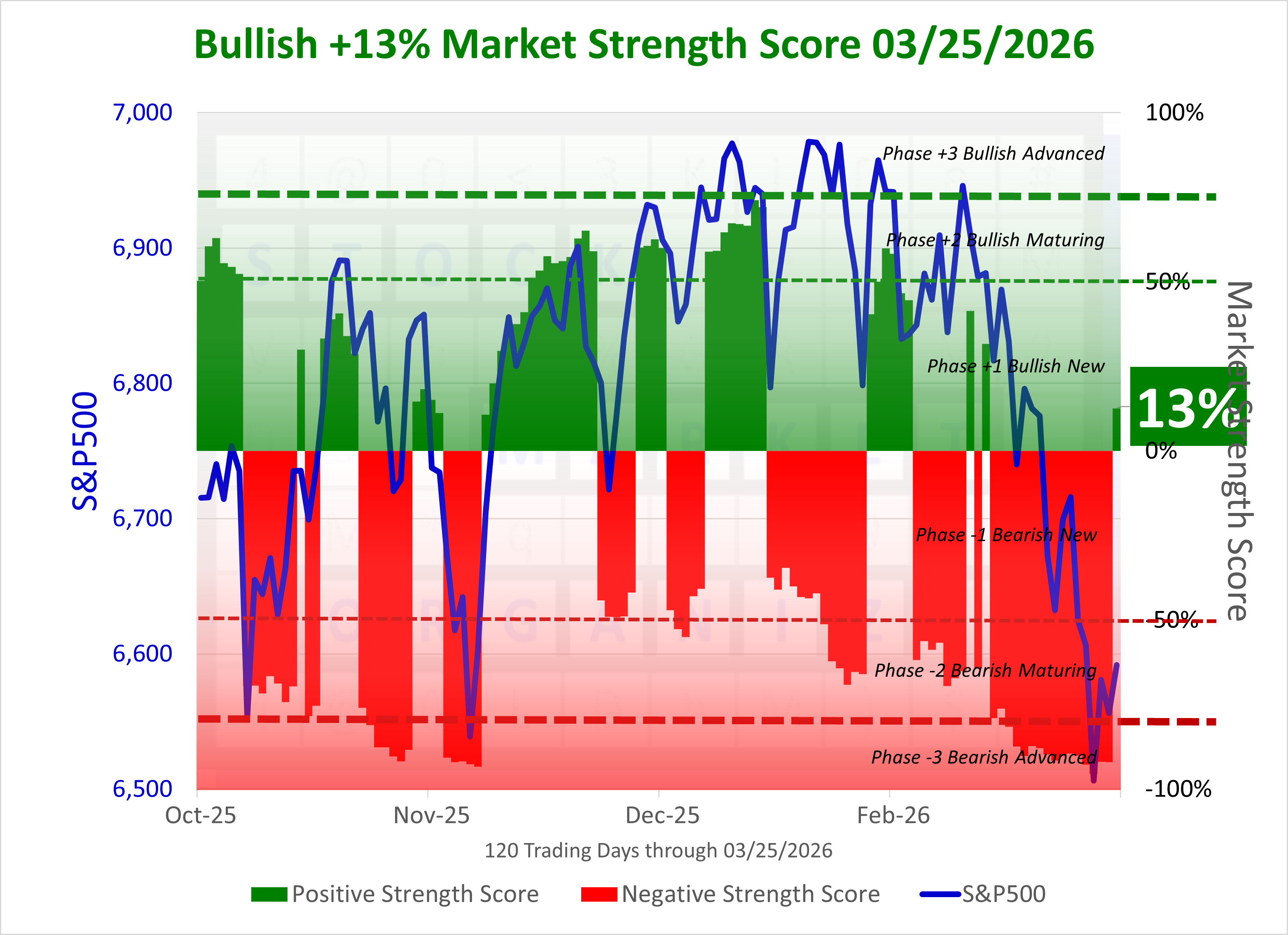 NEW - POSITIVE Market Strength Score Wed 2026-03-25 (Phase +1 Bullish Early +13%)