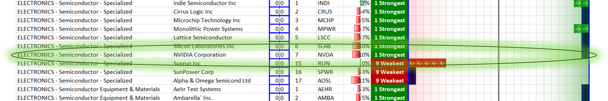 The fact is that as of this post 2 days ago NVDA was already strong, a leader in the Electronics / Semiconductor-Specialized sub-industry.