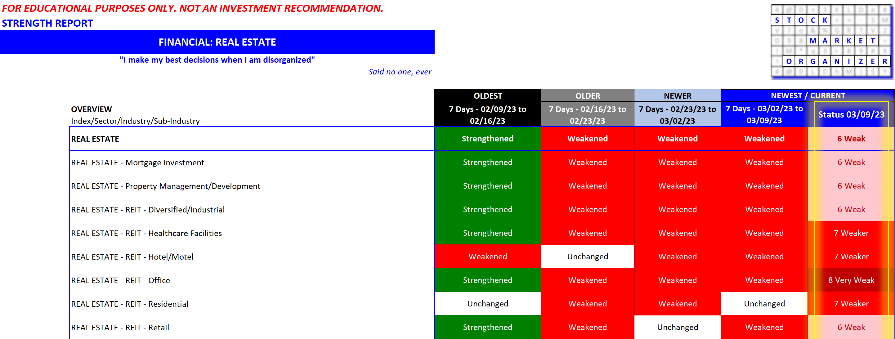 In other words, a straightforward measurement of how stocks, sub-industries, and industries compare to each other in terms of strengthening and weakening.