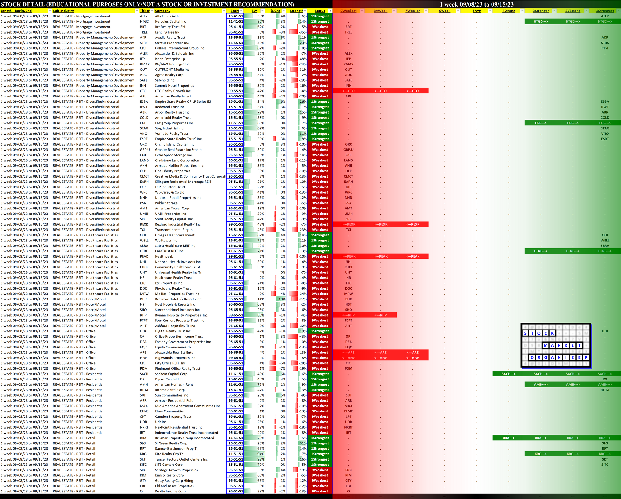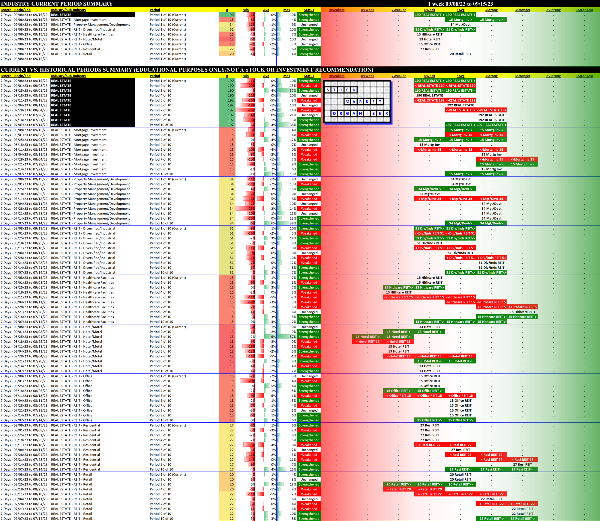 Real Estate 2023-09-15: UP 1 to AVERAGE strength rating (5th strongest of 9 levels), previous move was DOWN