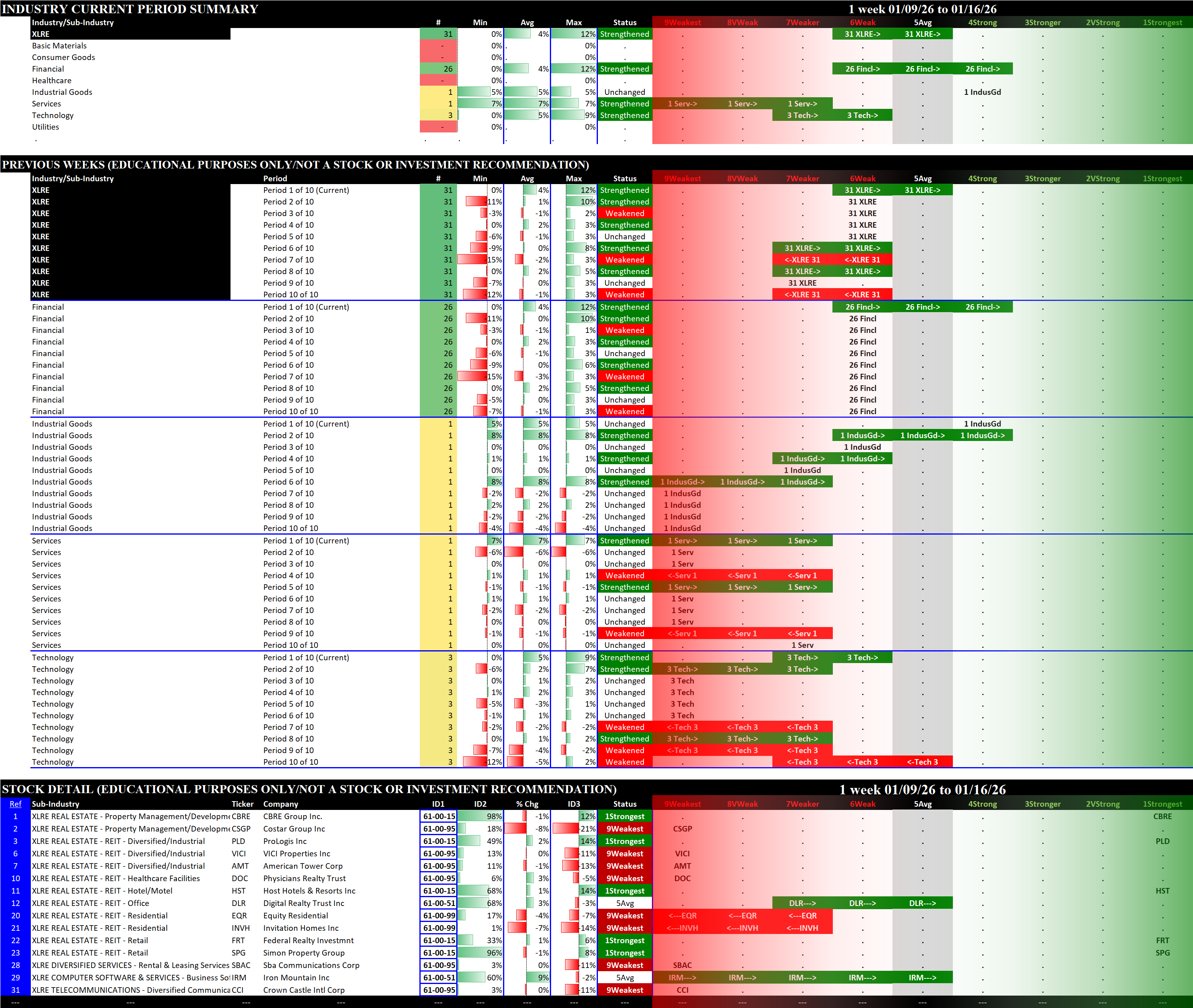 Real Estate Industry Fri 2026-01-16: Strengthened +1, 4Strong (XLRE Strengthened +1, 5Average)