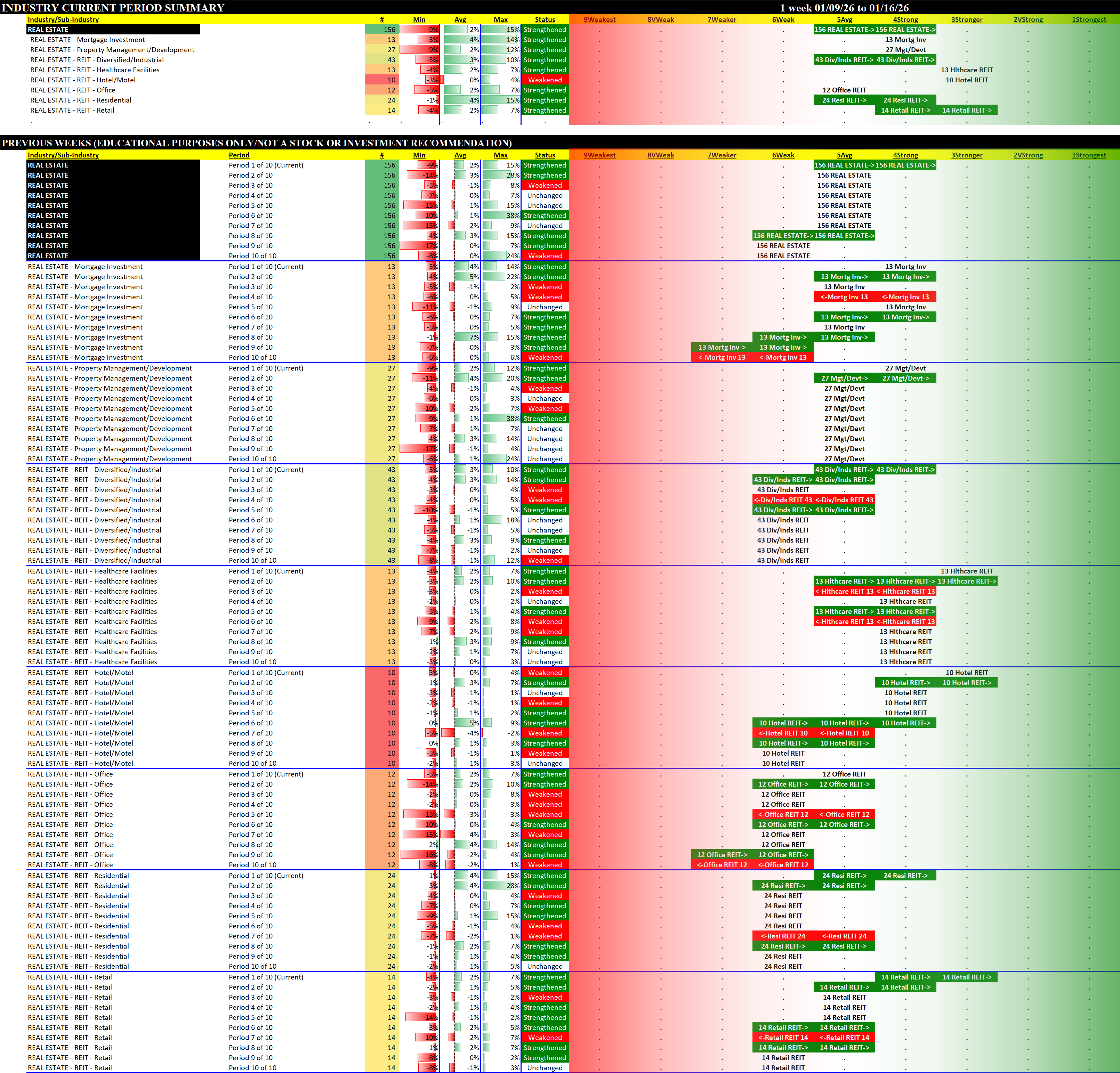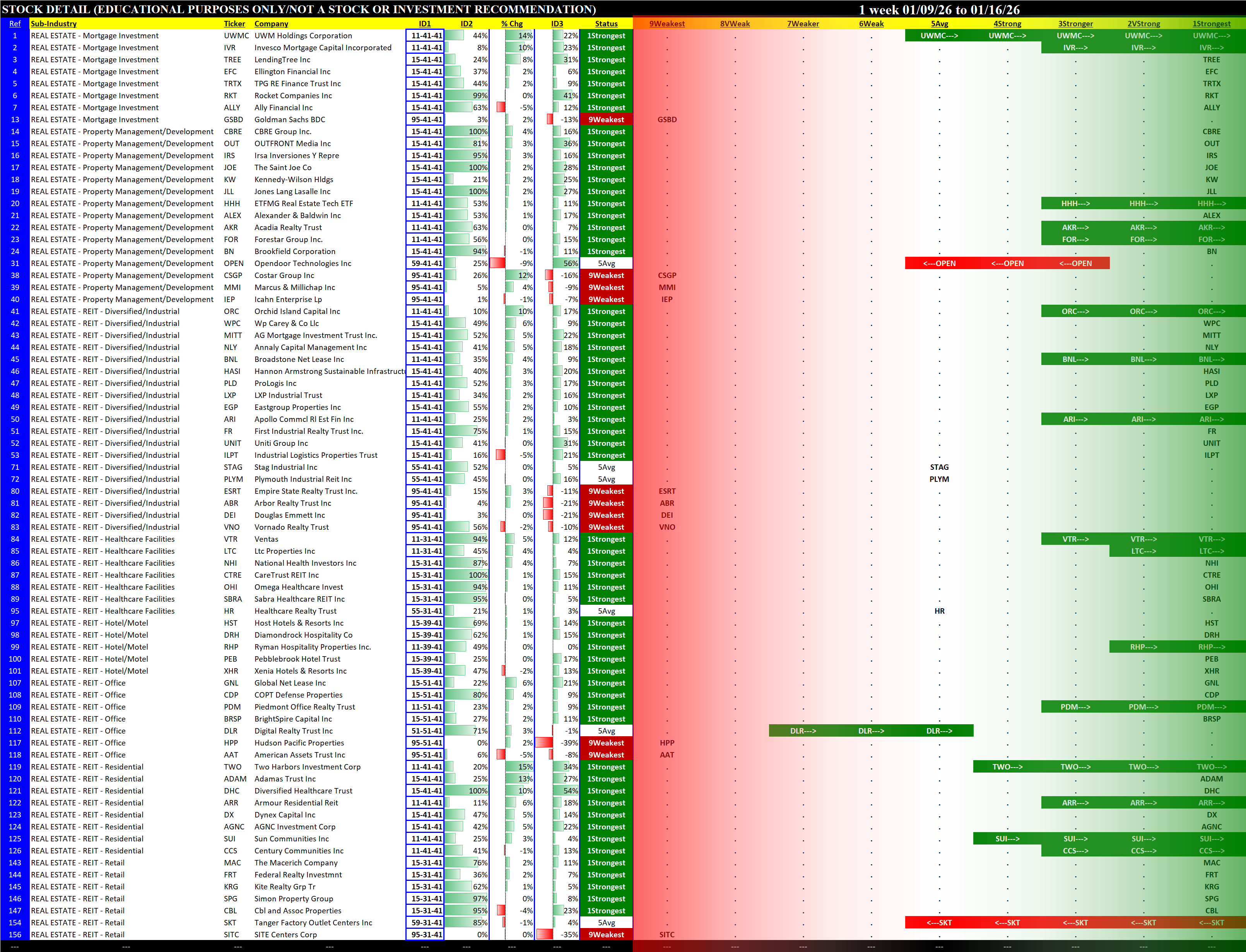 Real Estate Industry Fri 2026-01-16: Strengthened +1, 4Strong (XLRE Strengthened +1, 5Average)