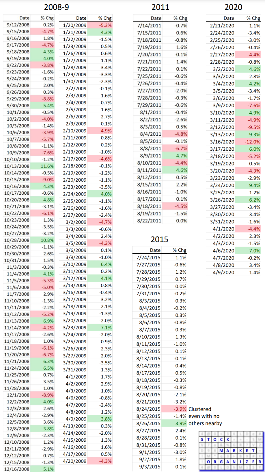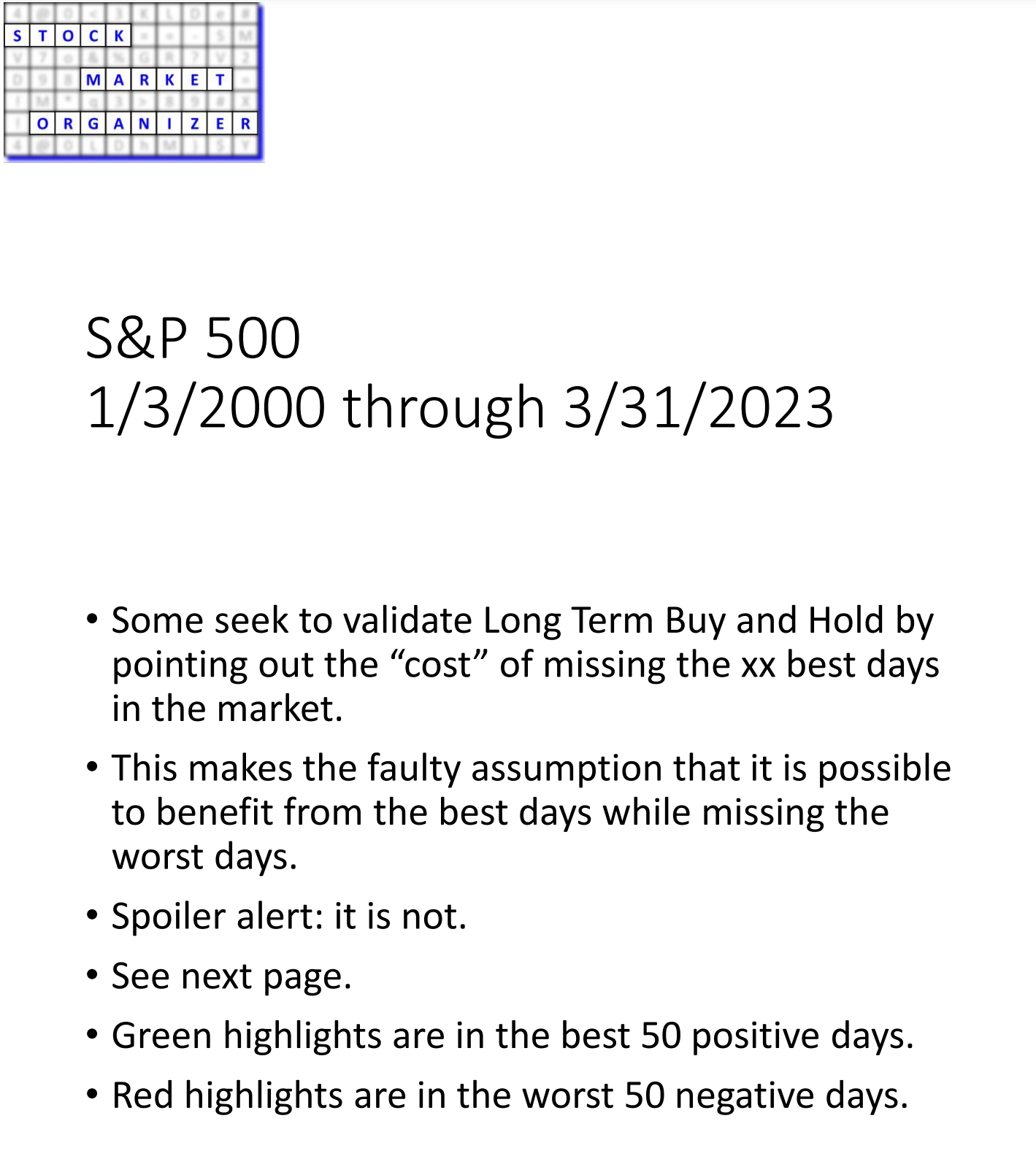 MY ANSWER: Reality shows 0% chance of missing the best xx market days while hitting the worst xx. There are reasons to LTB&H but this argument (you'll miss the big up days) is not one of them. Good and bad days cluster.
