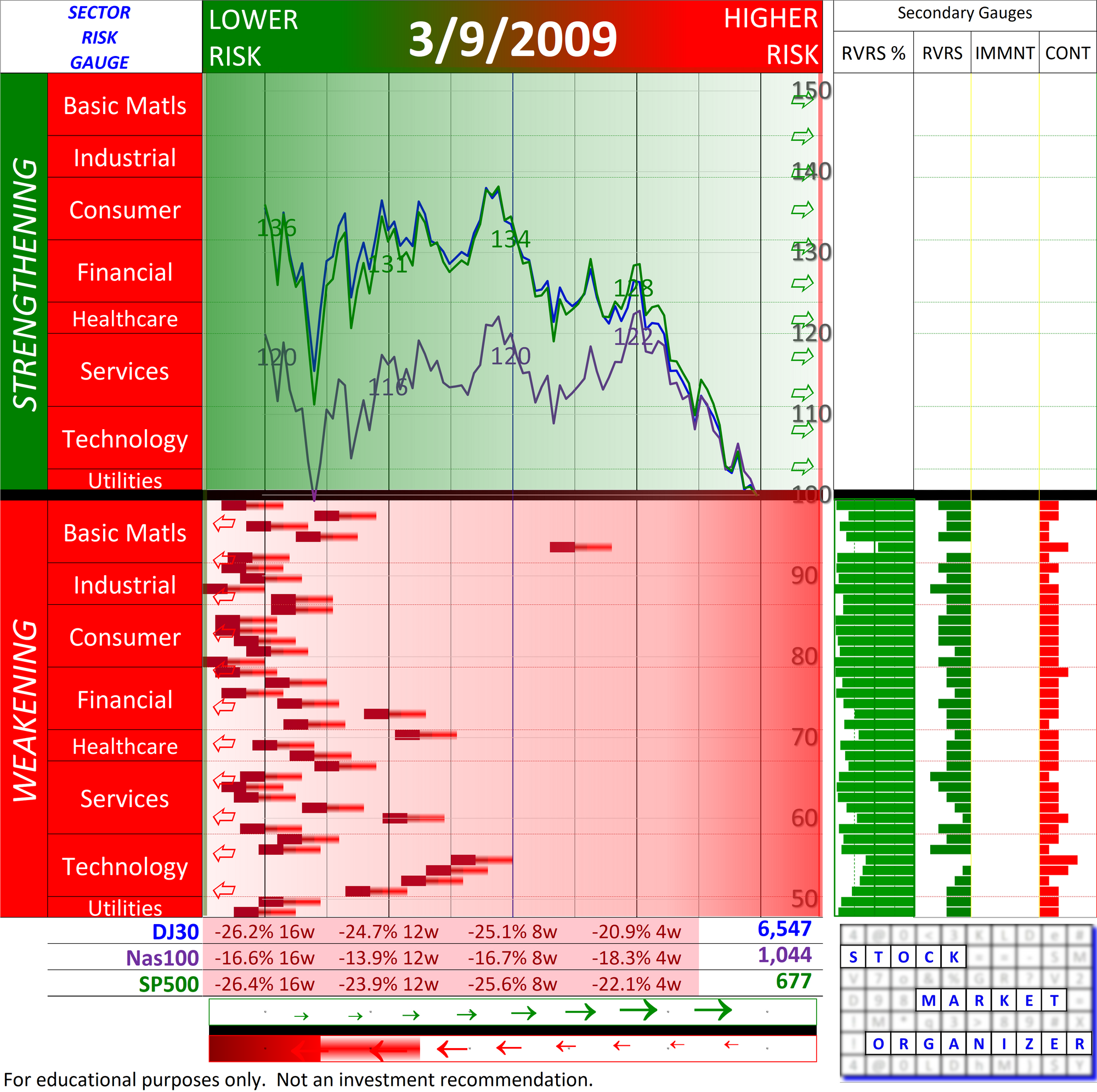 The Sector Risk Gauge and the "it's time in the market" claim - what bottoms look like (three questions and two graphics)