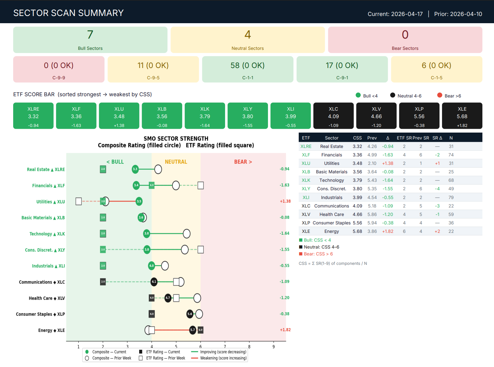 Sector Scan Fri 2026-04-17: Bull Neutral Bear 7-4-0