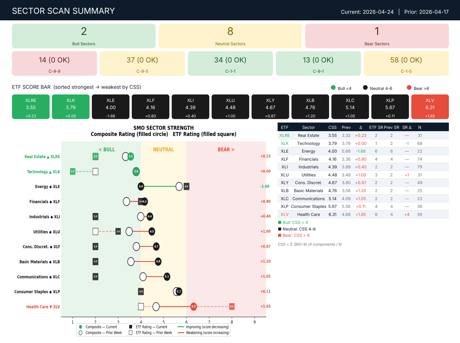 Sector Scan Fri 2026-04-24: Bull Neutral Bear 2-8-1