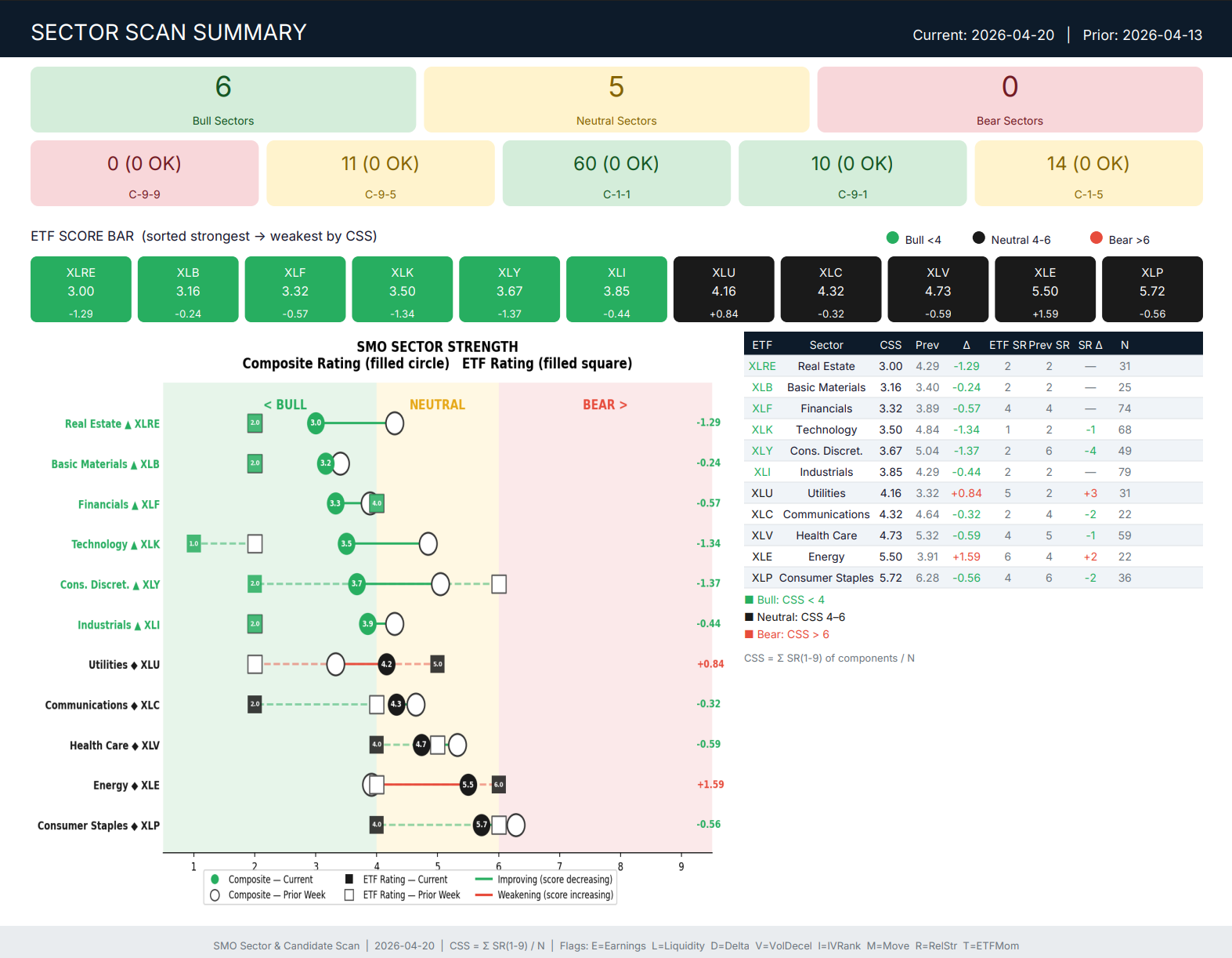 Sector Scan Mon 2026-04-20: Bull Neutral Bear 6-5-0