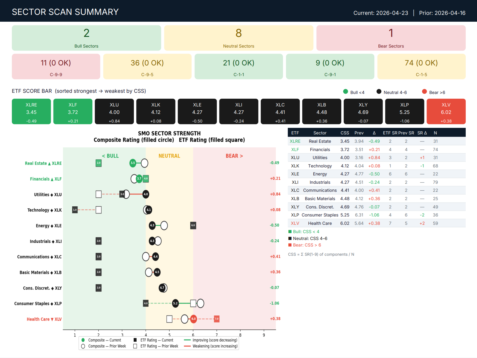 Sector Scan Thu 2026-04-23: Bull Neutral Bear 2-8-1