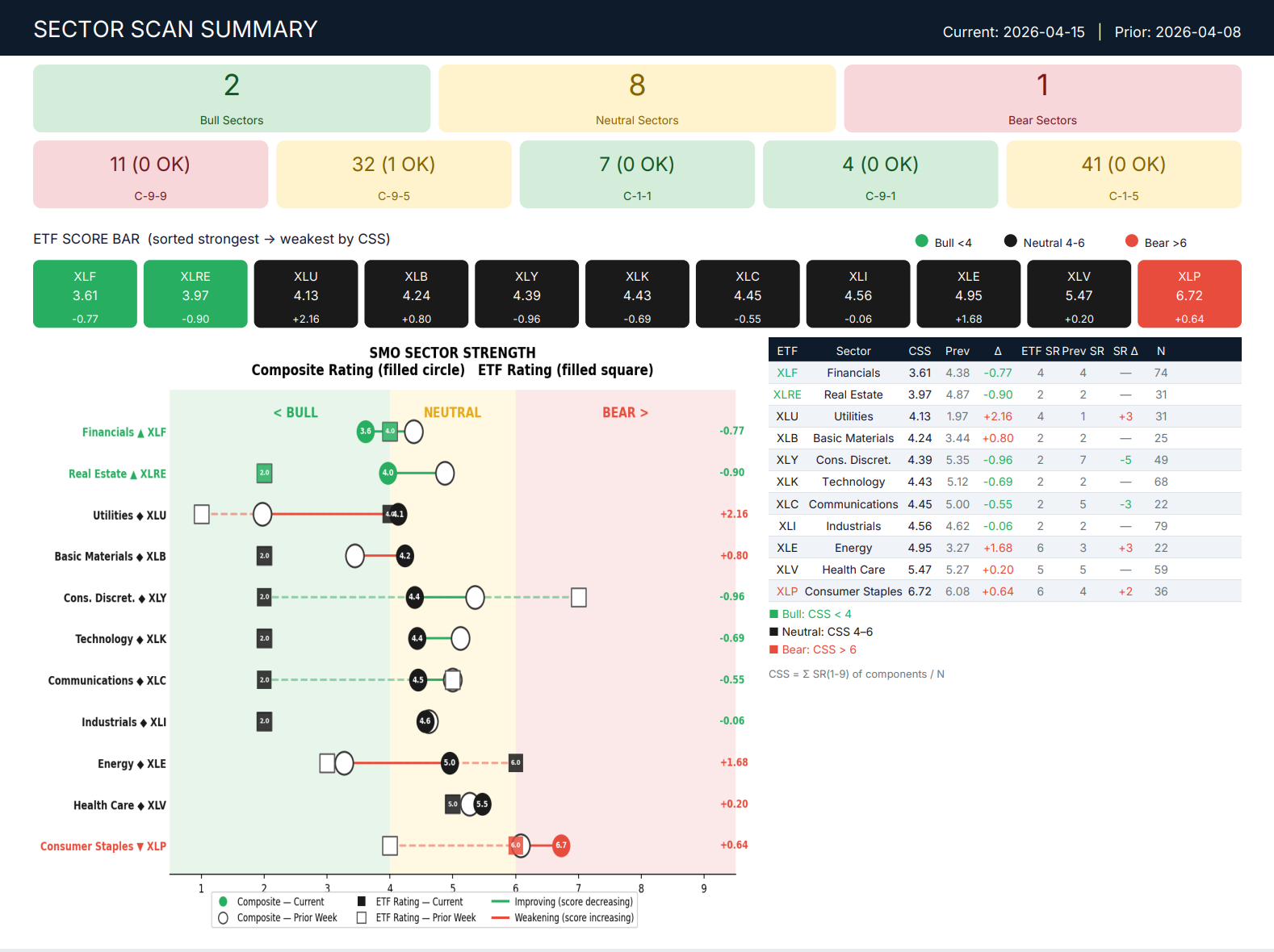 Sector Scan Wed 2026-04-15: Bull Neutral Bear 2-8-1