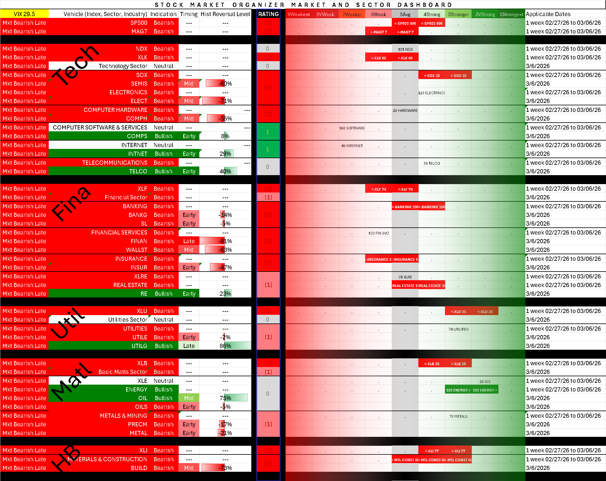 The dashboard has red everywhere. Computer Software & Services and Internet are showing relative strength, although as a whole they are weaker. This does mean they have a higher ceiling.