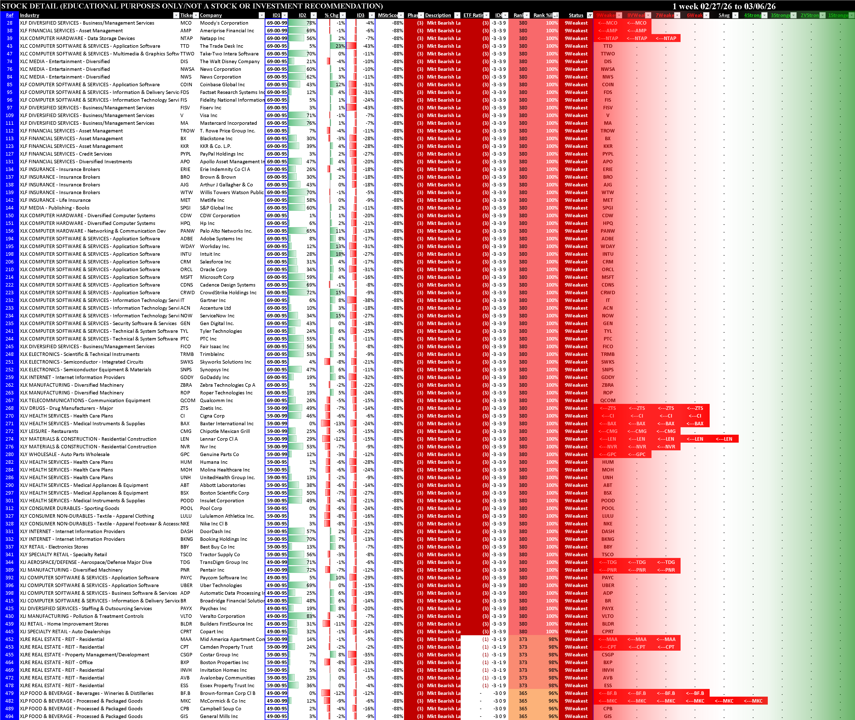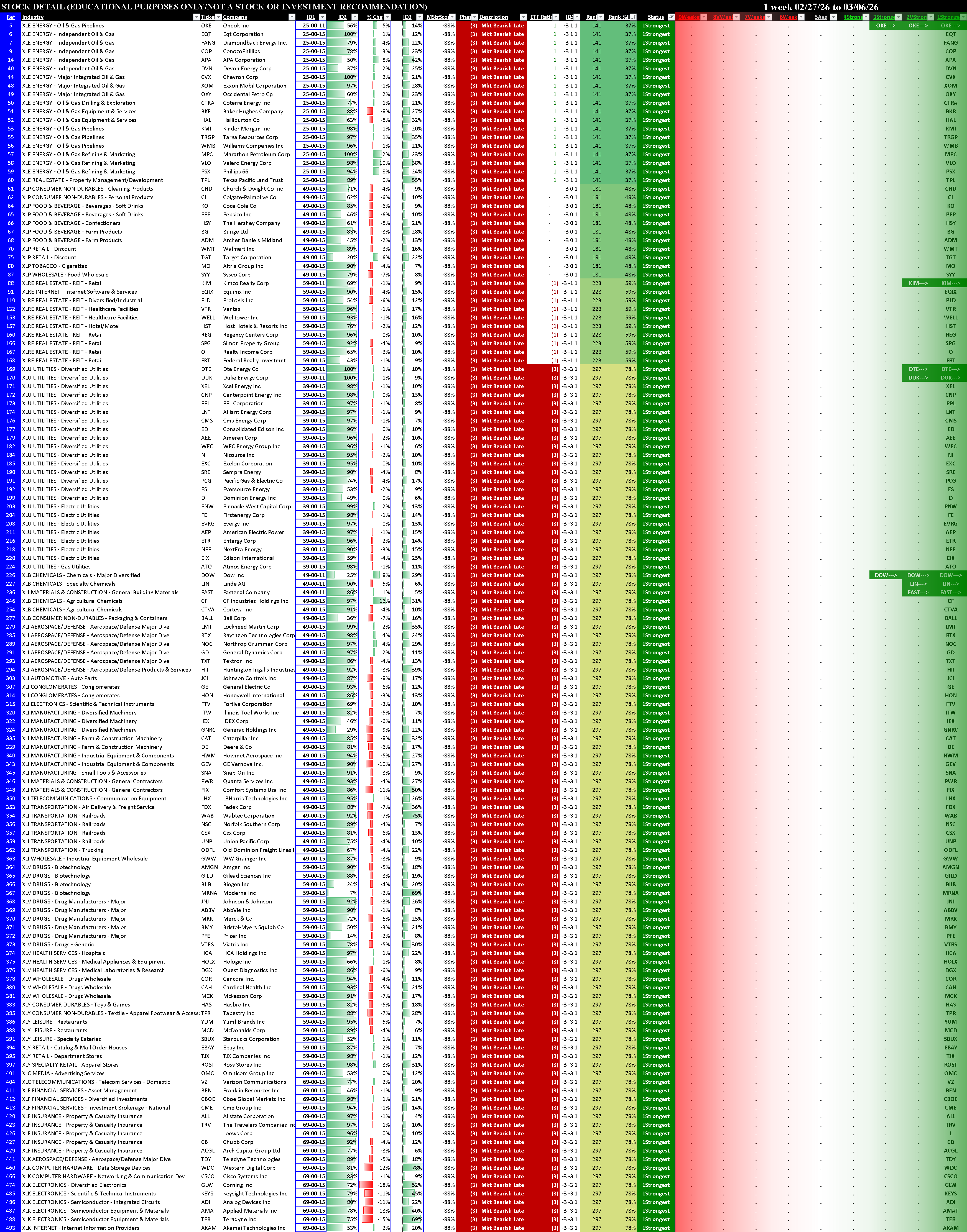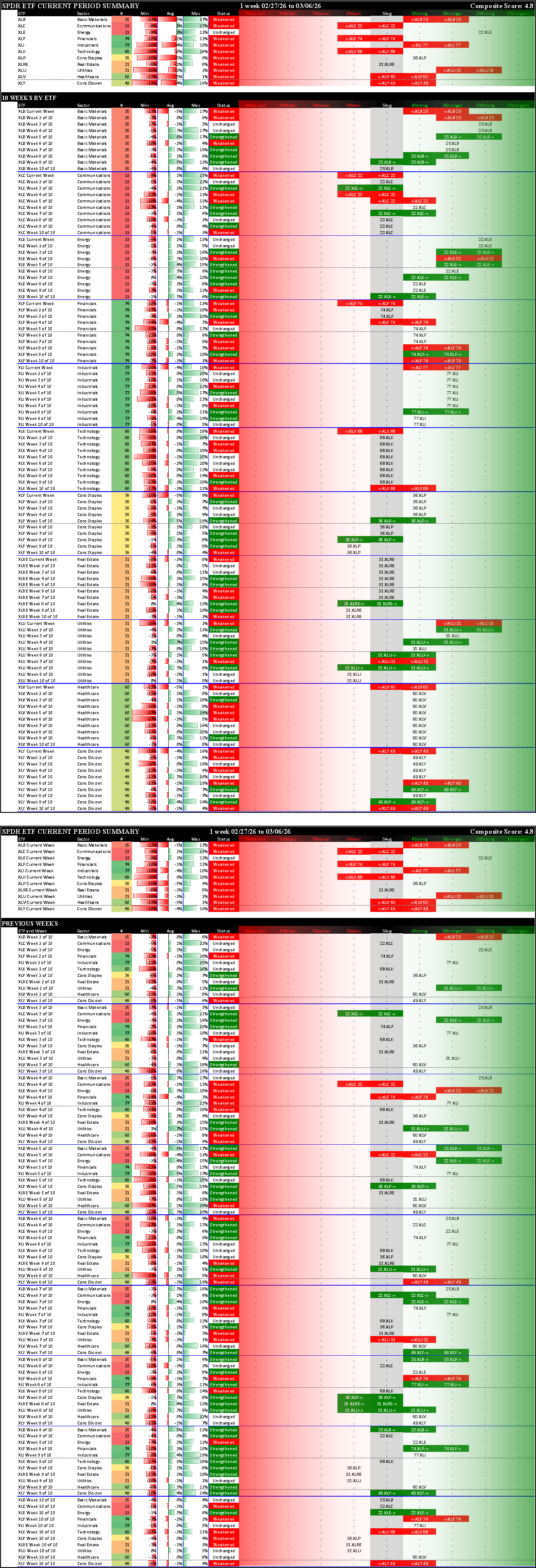 Only XLE Energy was on the green side this week and on the red side only XLRE Real Estate and XLP Consumer Staples escaped the worst rating.