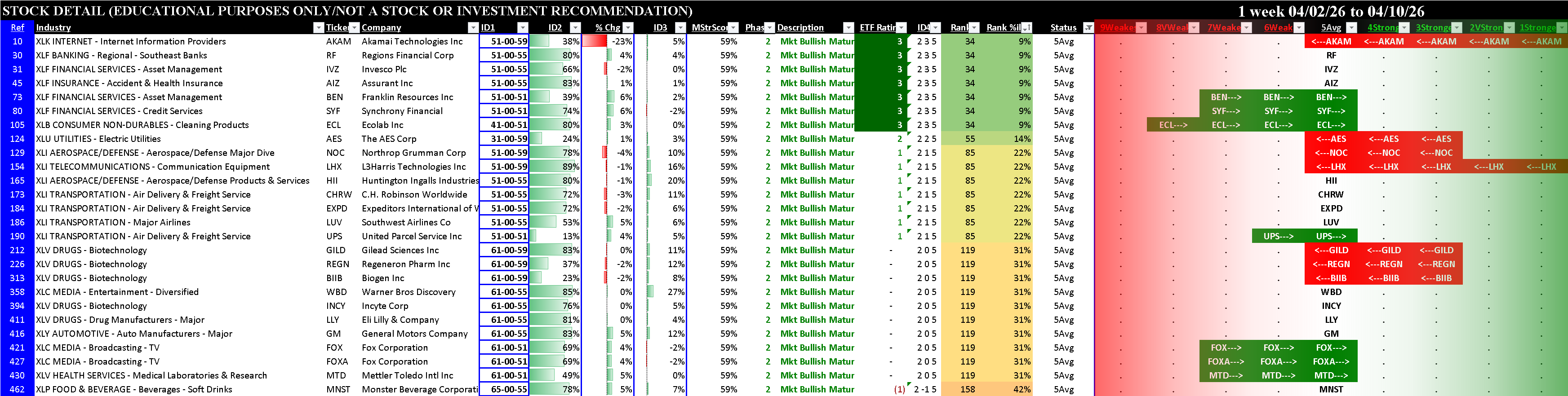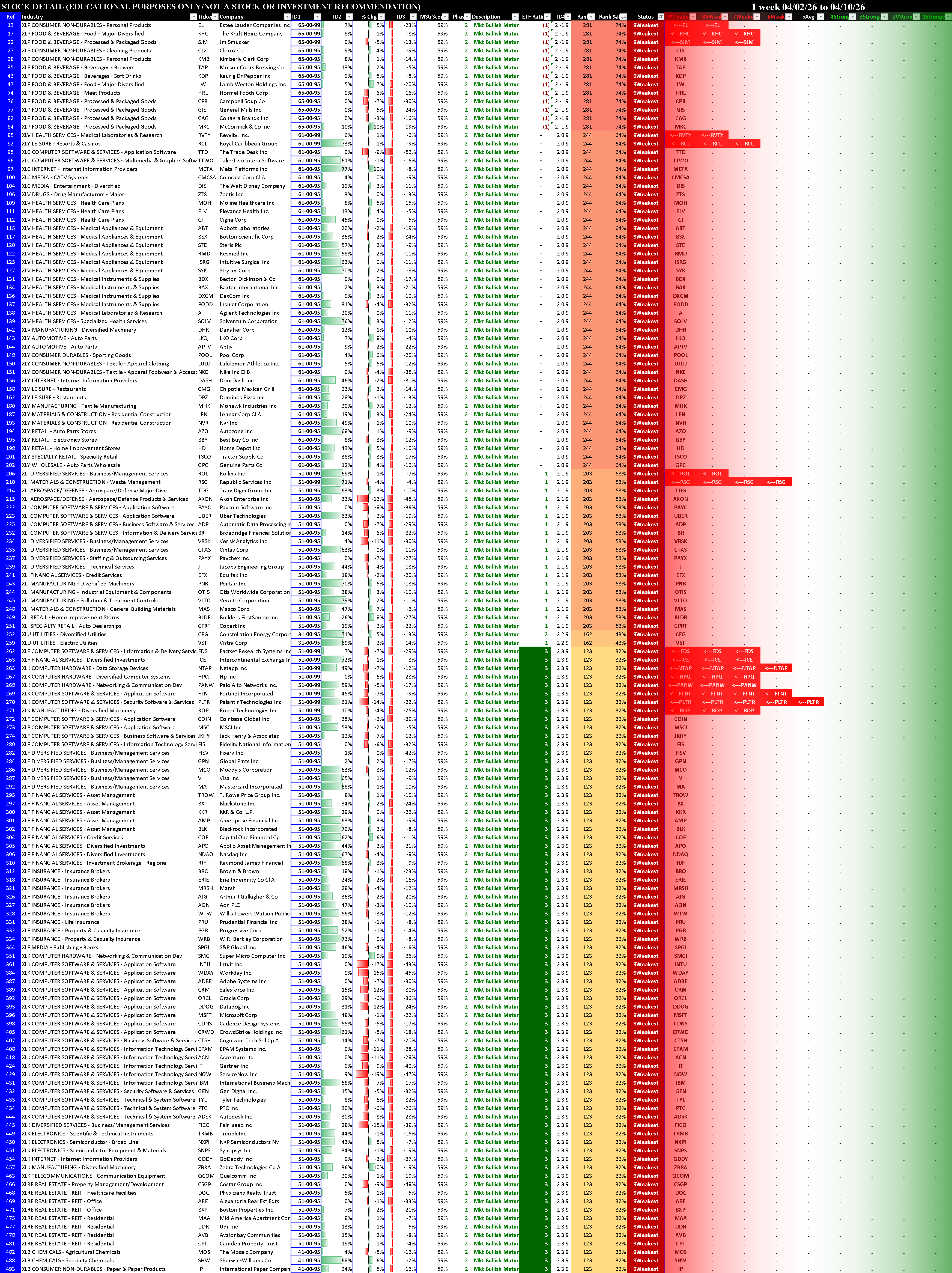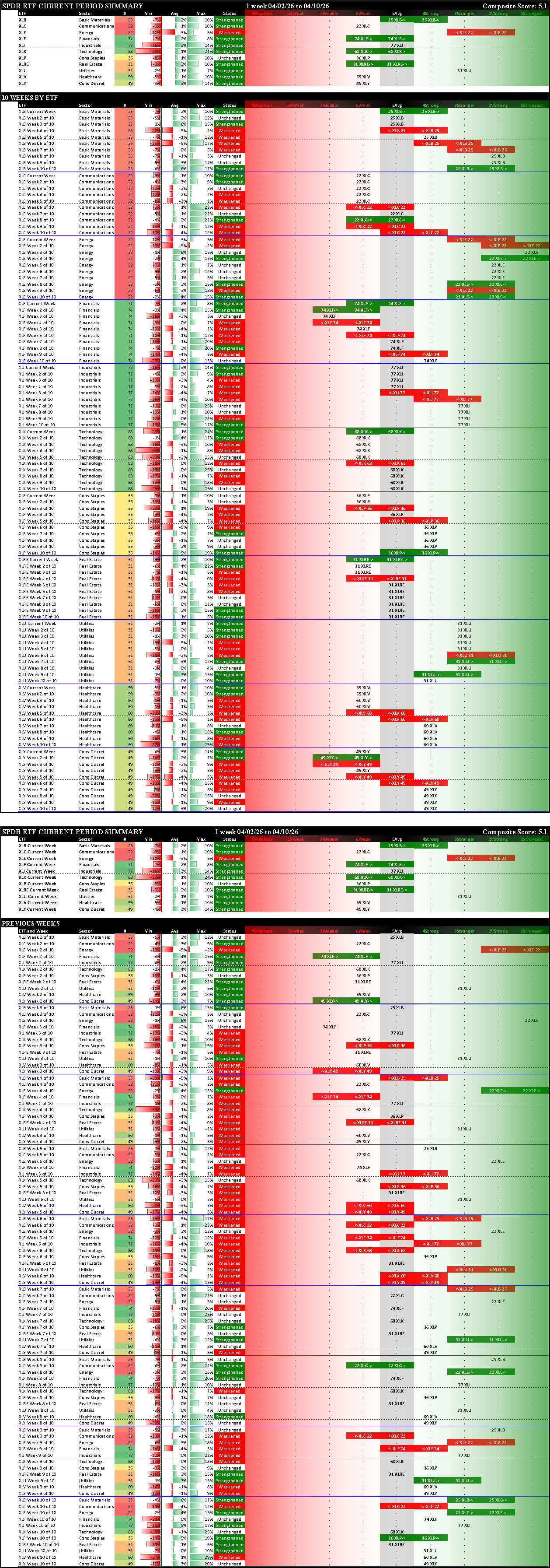Sector ETFs Stocks Rated 1Strongest and 9Weakest